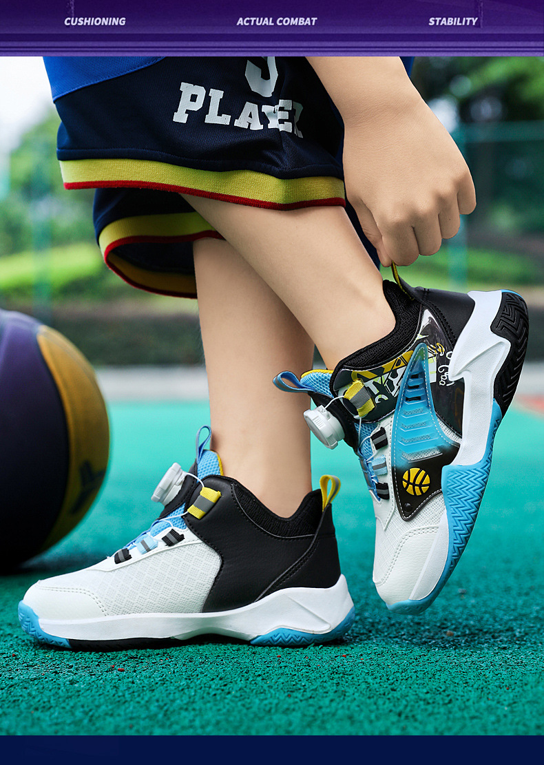 어린이 농구화 여름 가을 겨울 메쉬 플라이-짠 운동화 물고기 와이어 그물 운동화 조수 회전 버튼 훈련 신발