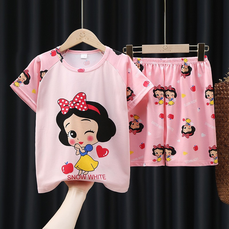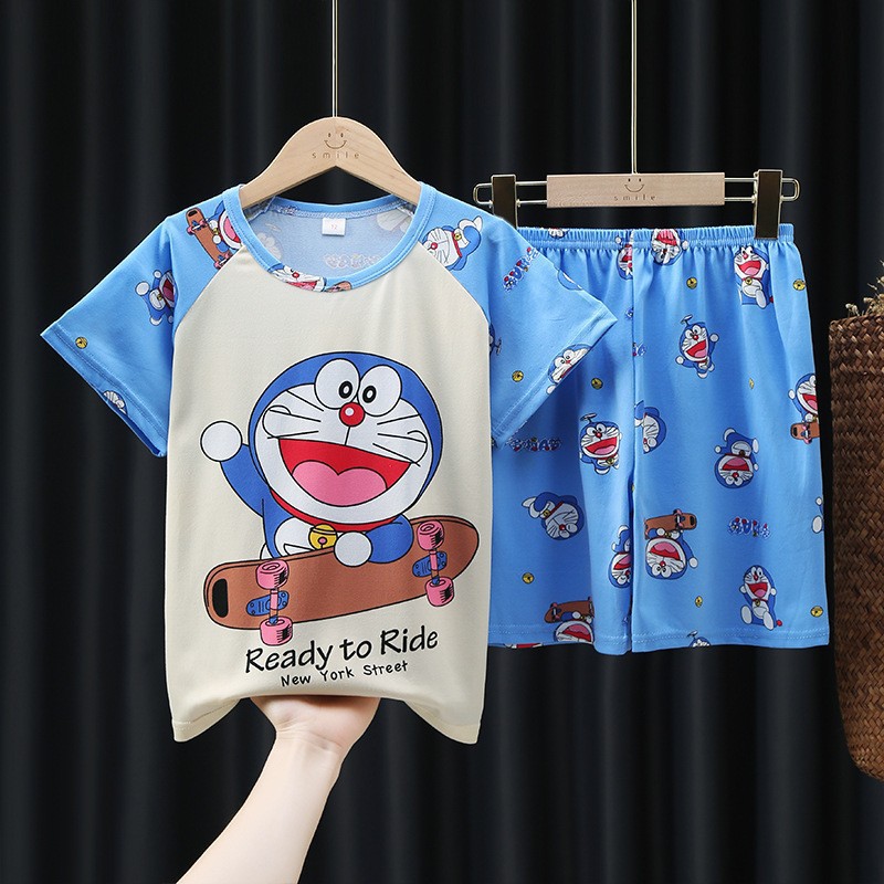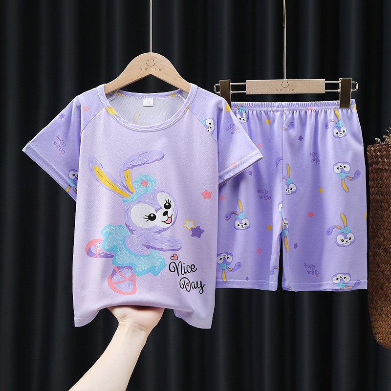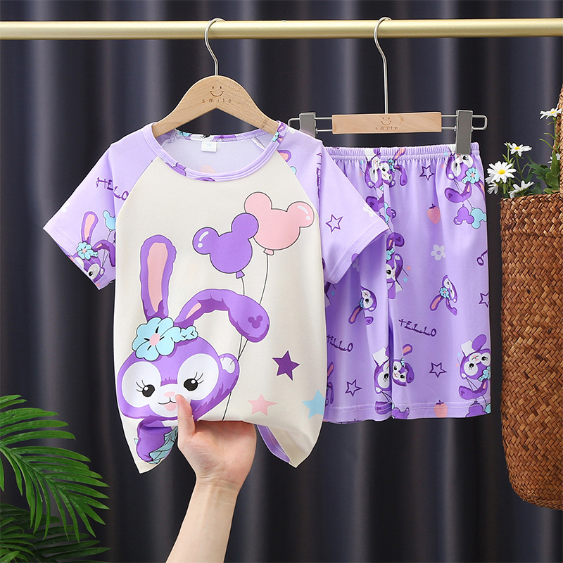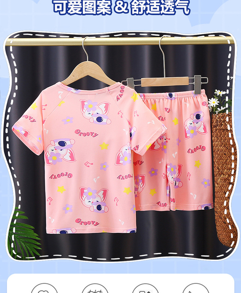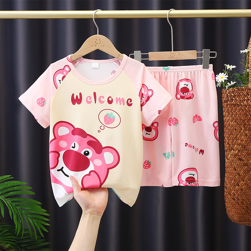 소년과 소녀를위한 여름 어린이 잠옷 레저 얇은 반팔 만화 큰 어린이 소년 아기 가정 옷 세트 도매