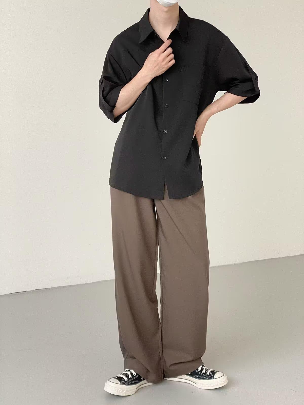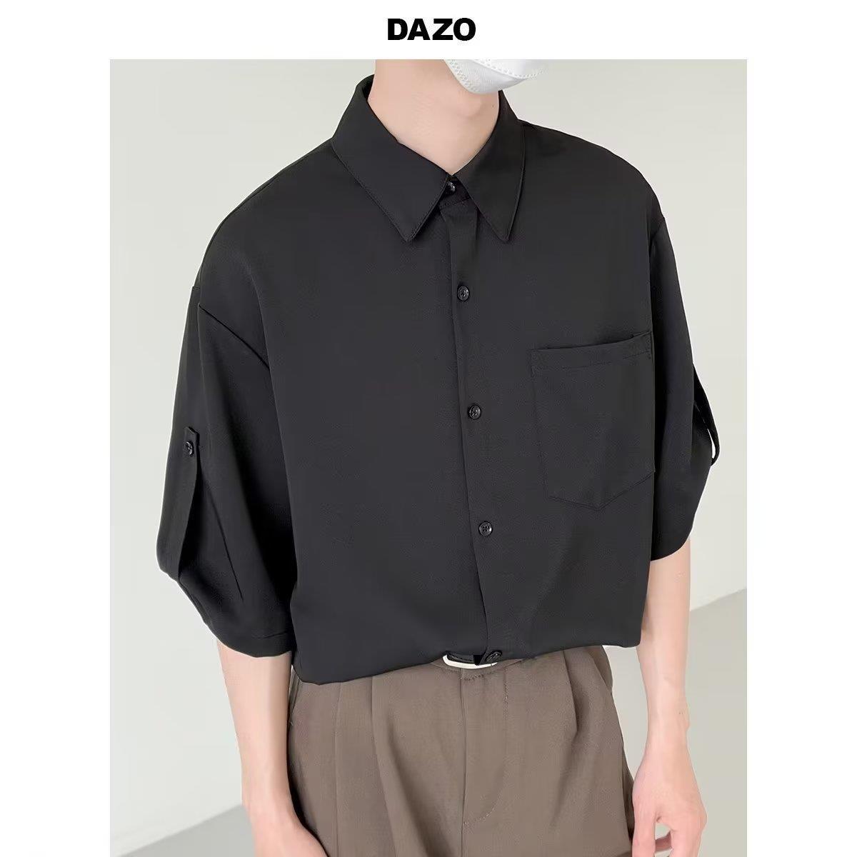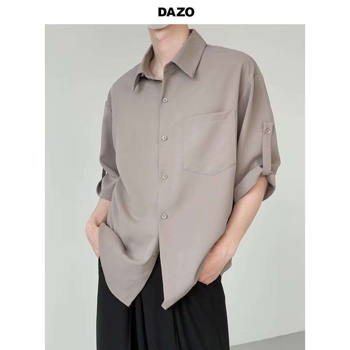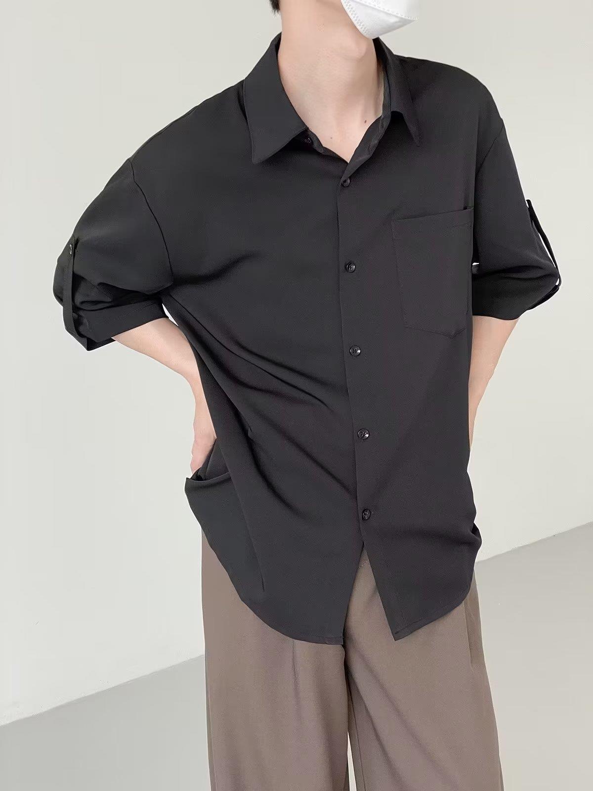 아이스 실크 셔츠 남성용 반팔 고급 여름 푹신한 잘 생긴 5 점 루즈한 탑 트렌디 브랜드 7 점 반소매 셔츠 트렌디스토어 가기