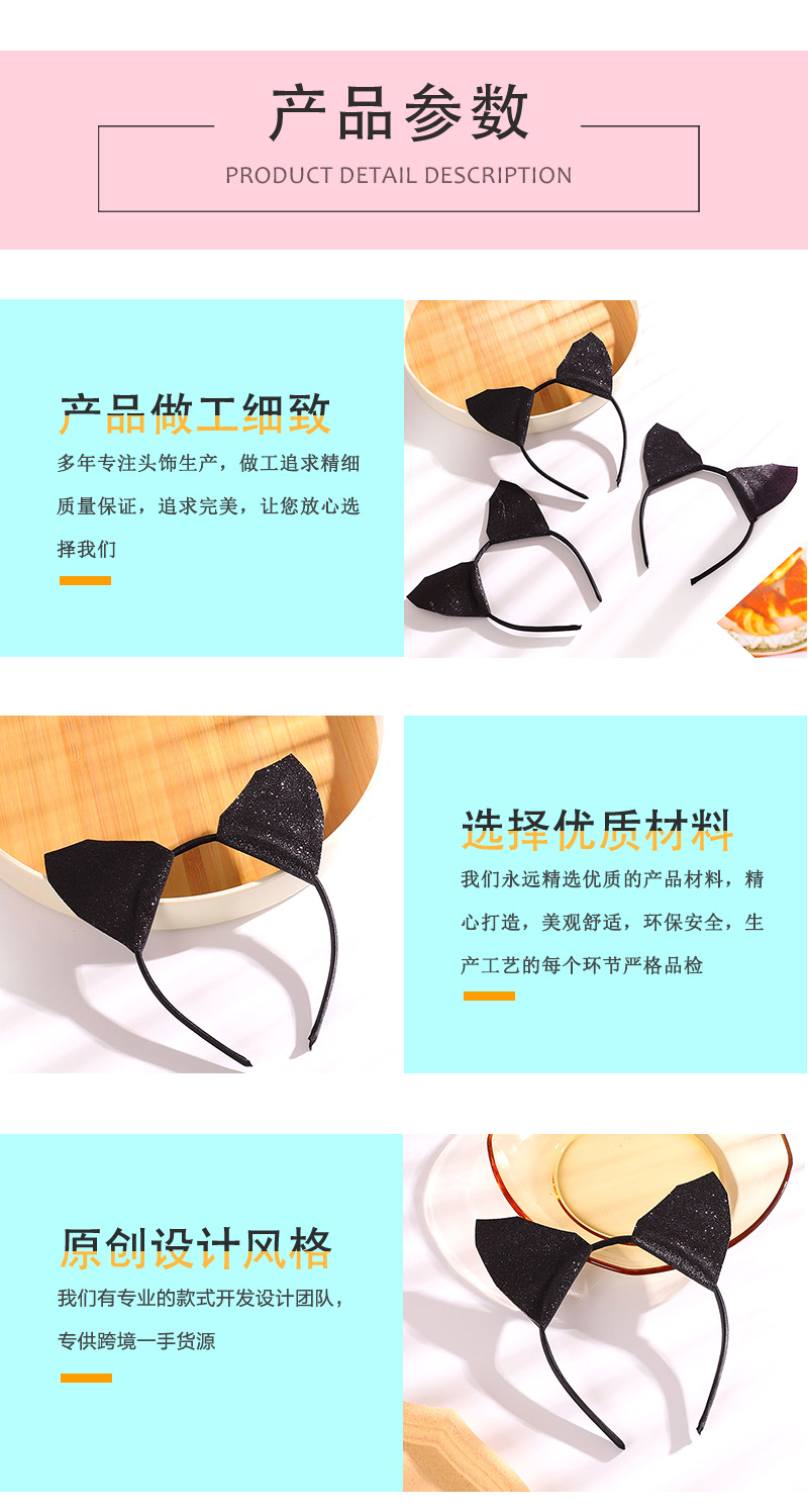 새로운 한국어 스타일 어린이 축제 고양이 귀 머리띠 기질 복고풍 Gret 다목적 스팽글 머리 버클 제조 업체 도매