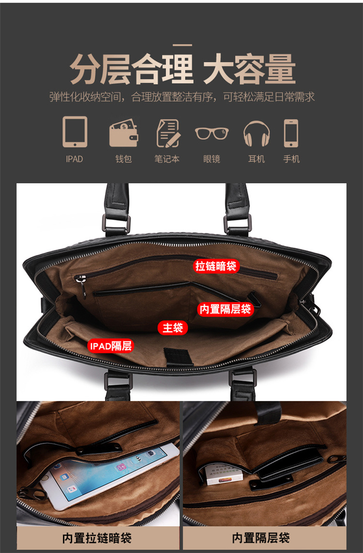 공장 도매 남성 핸드백 슬링 숄더 메신저 백 손으로 짠 비즈니스 서류 가방 수평 컴퓨터 가방스토어 가기