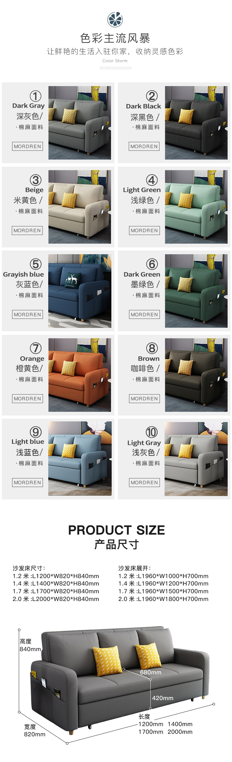 • 1.2 m 코코넛 야자 + 보관 색상에 유의하십시오