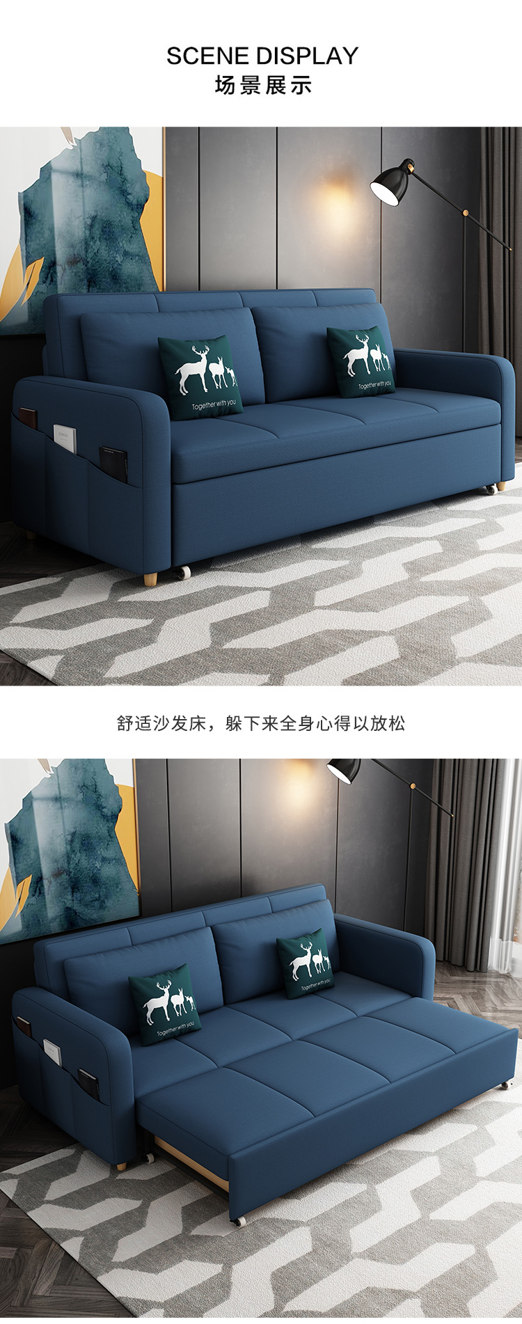 소파 침대 접이식 침대 라텍스 앉아 다기능 확장 싱글 더블 거실 소형 아파트 소파 이중 사용스토어 가기