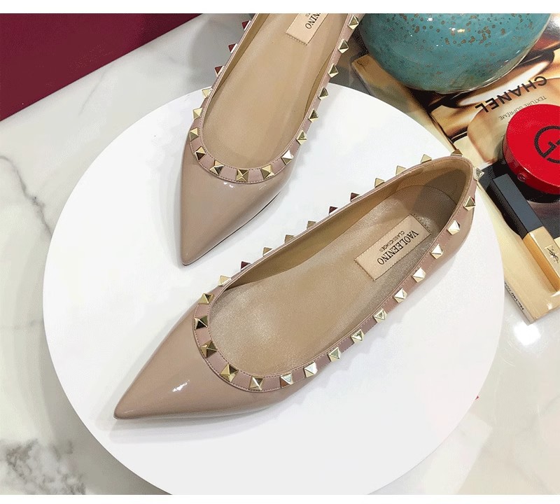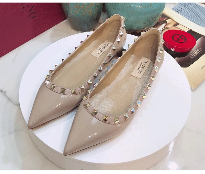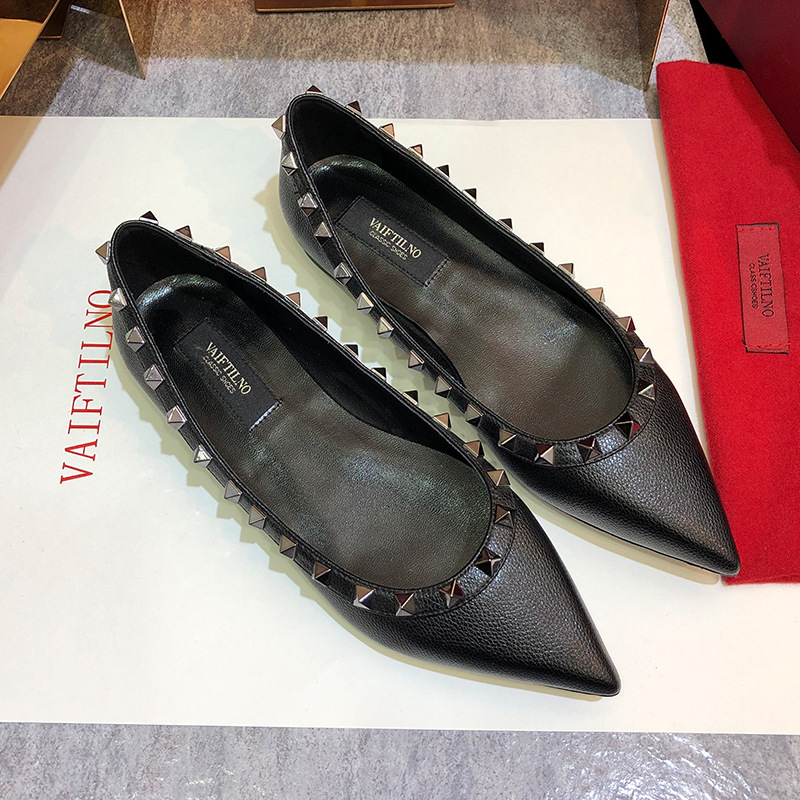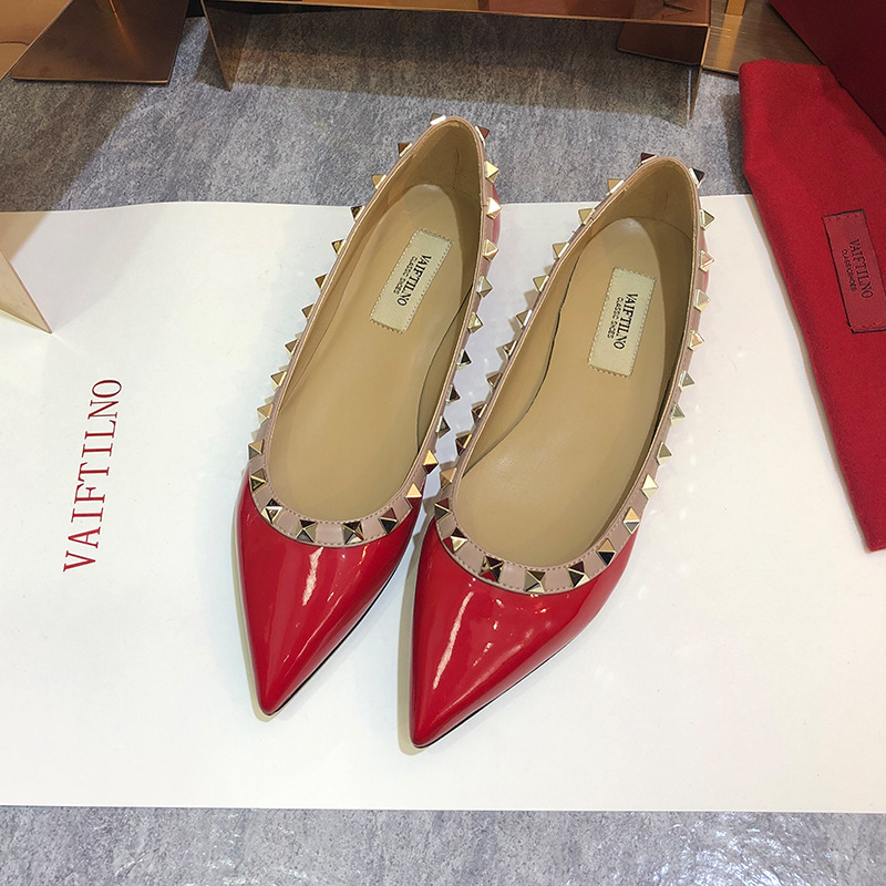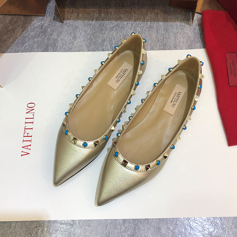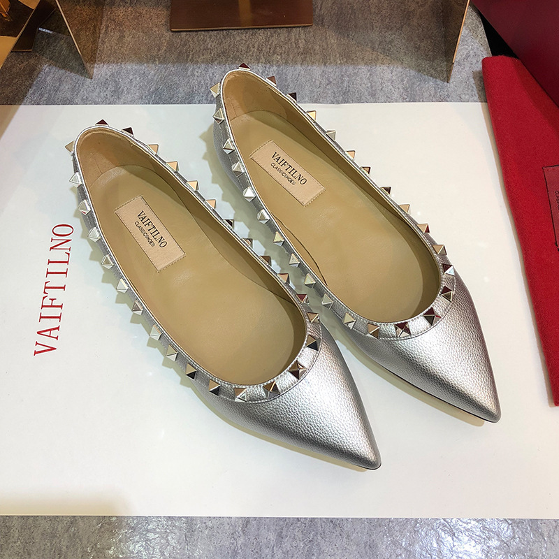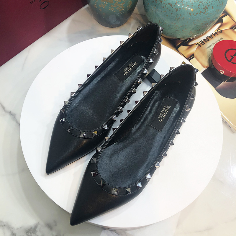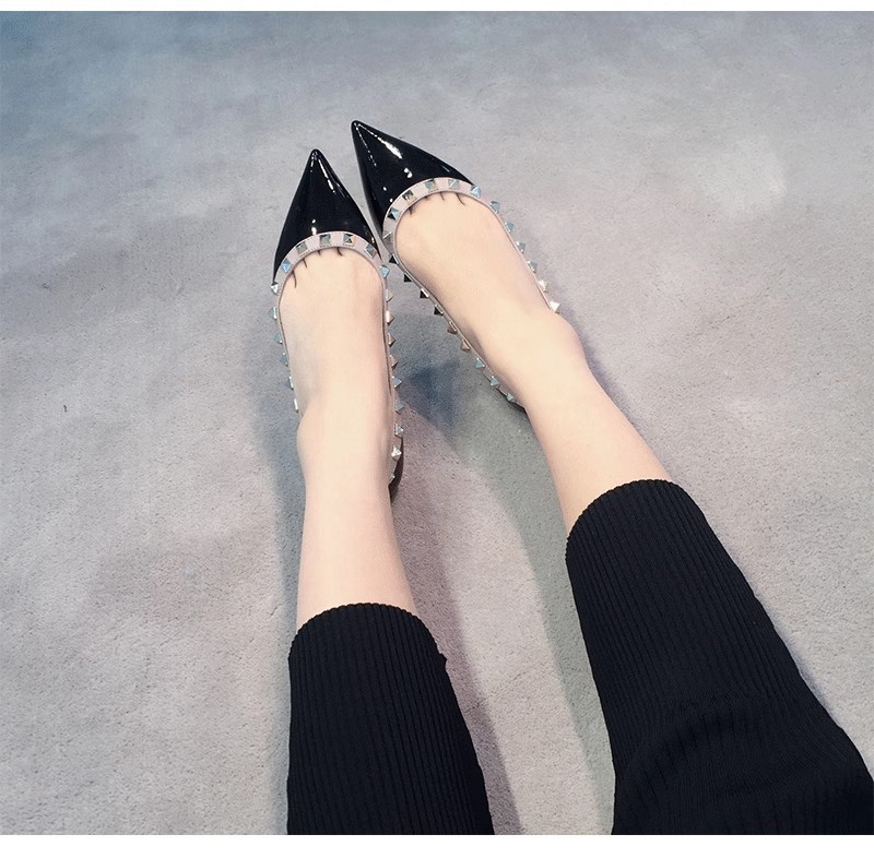 여성 플랫 슈즈, 천연 가죽 V자형 플랫 힐, 리벳 장식, 뾰족한 앞코, 얕은 입구, 큰 사이즈, 리벳 슈즈, 2026 봄 여름 신상품스토어 가기