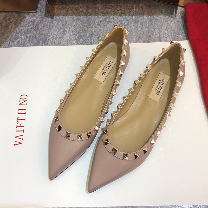 여성 플랫 슈즈, 천연 가죽 V자형 플랫 힐, 리벳 장식, 뾰족한 앞코, 얕은 입구, 큰 사이즈, 리벳 슈즈, 2026 봄 여름 신상품