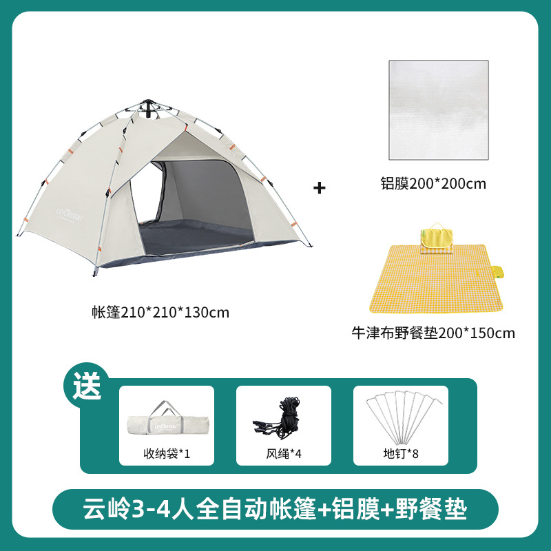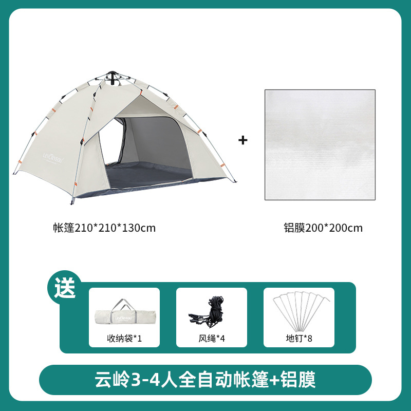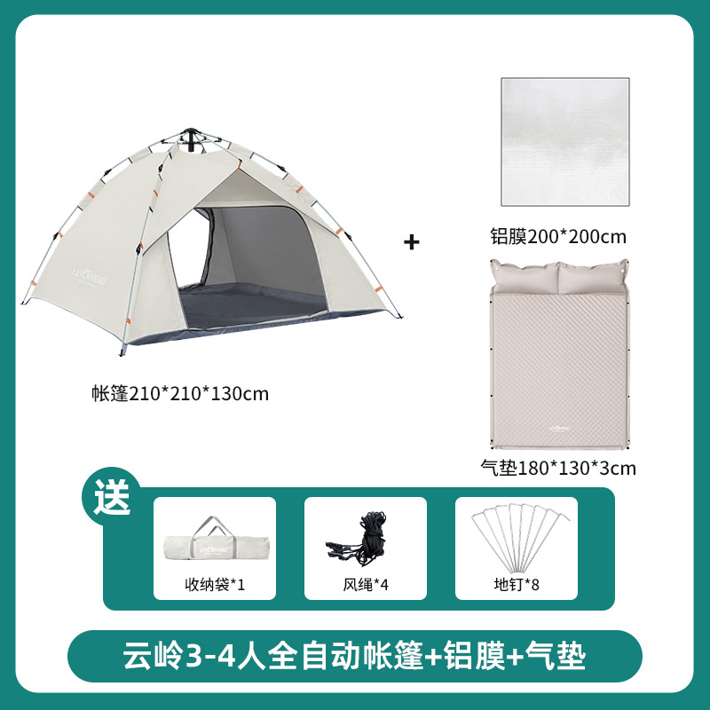 • 윤링 텐트 3-4 인 샌드 골드 + 알루미늄 필름 방습 매트 + 더블 3cm 에어쿠션