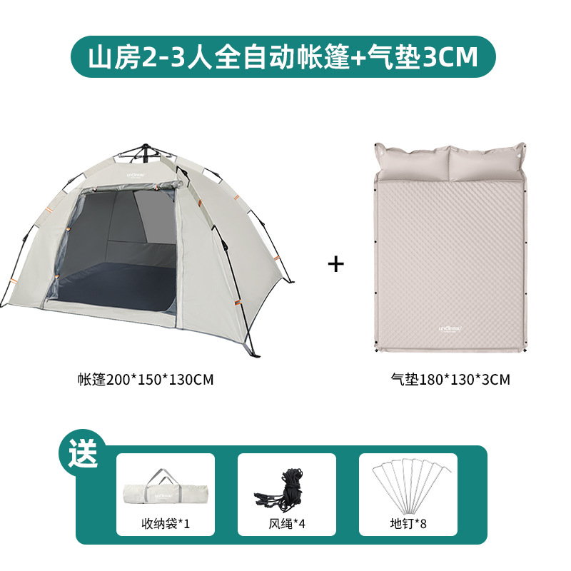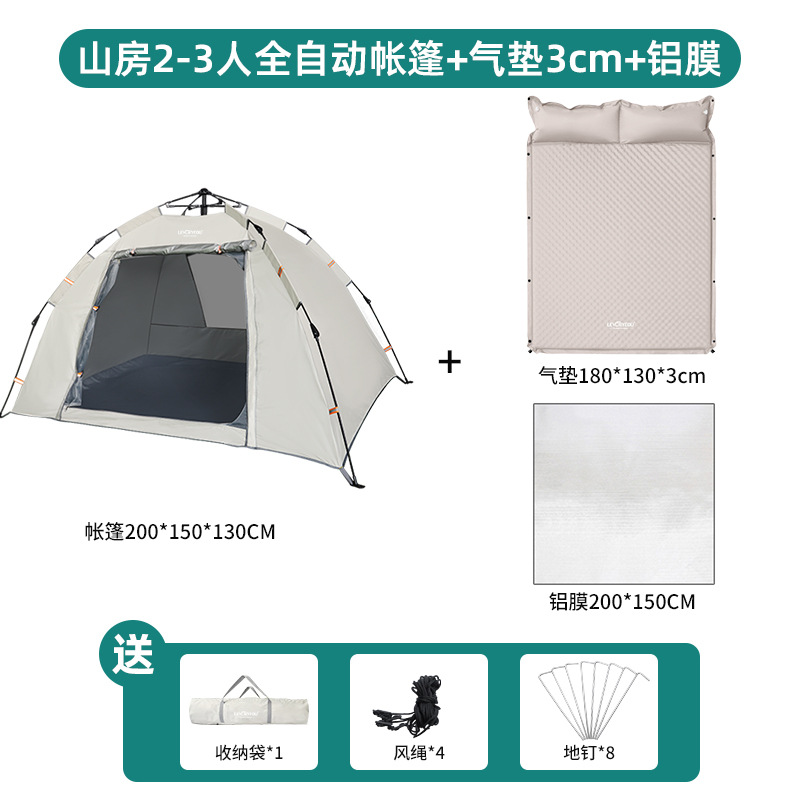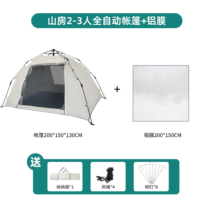 • 마운틴 텐트 2-3 인 샌드 골드 + 알루미늄 필름 방습 매트 + 더블 3cm 에어쿠션