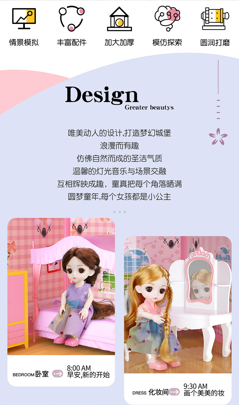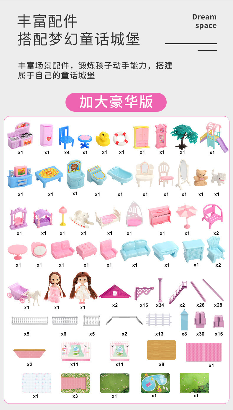 어린이 놀이 장난감 소녀 인형 집 소녀 공주 성 조립 빌라 3-6 생일 선물스토어 가기