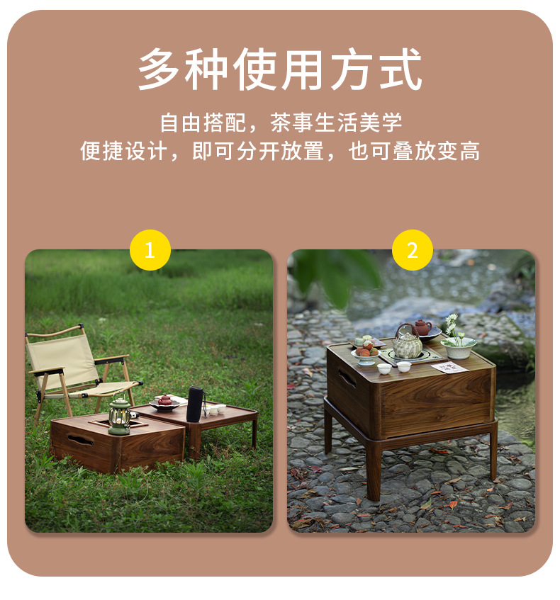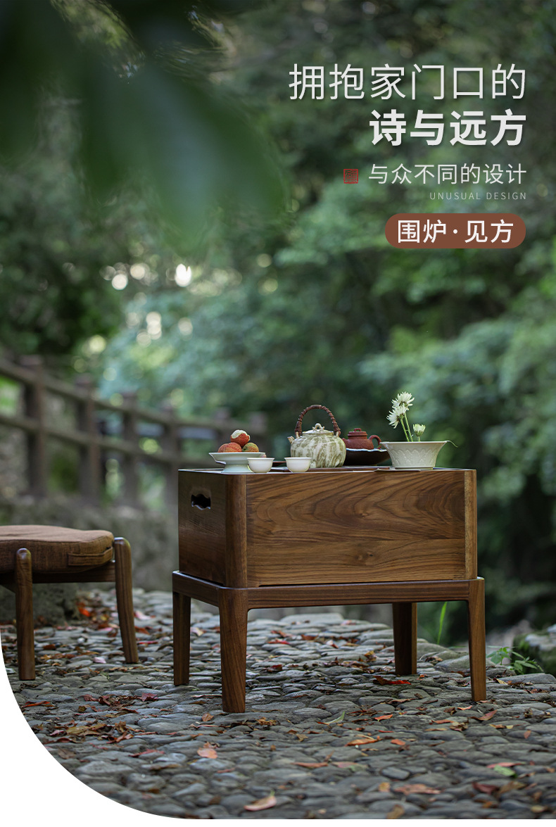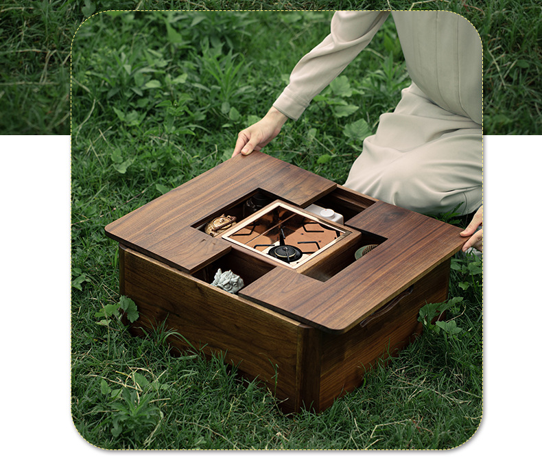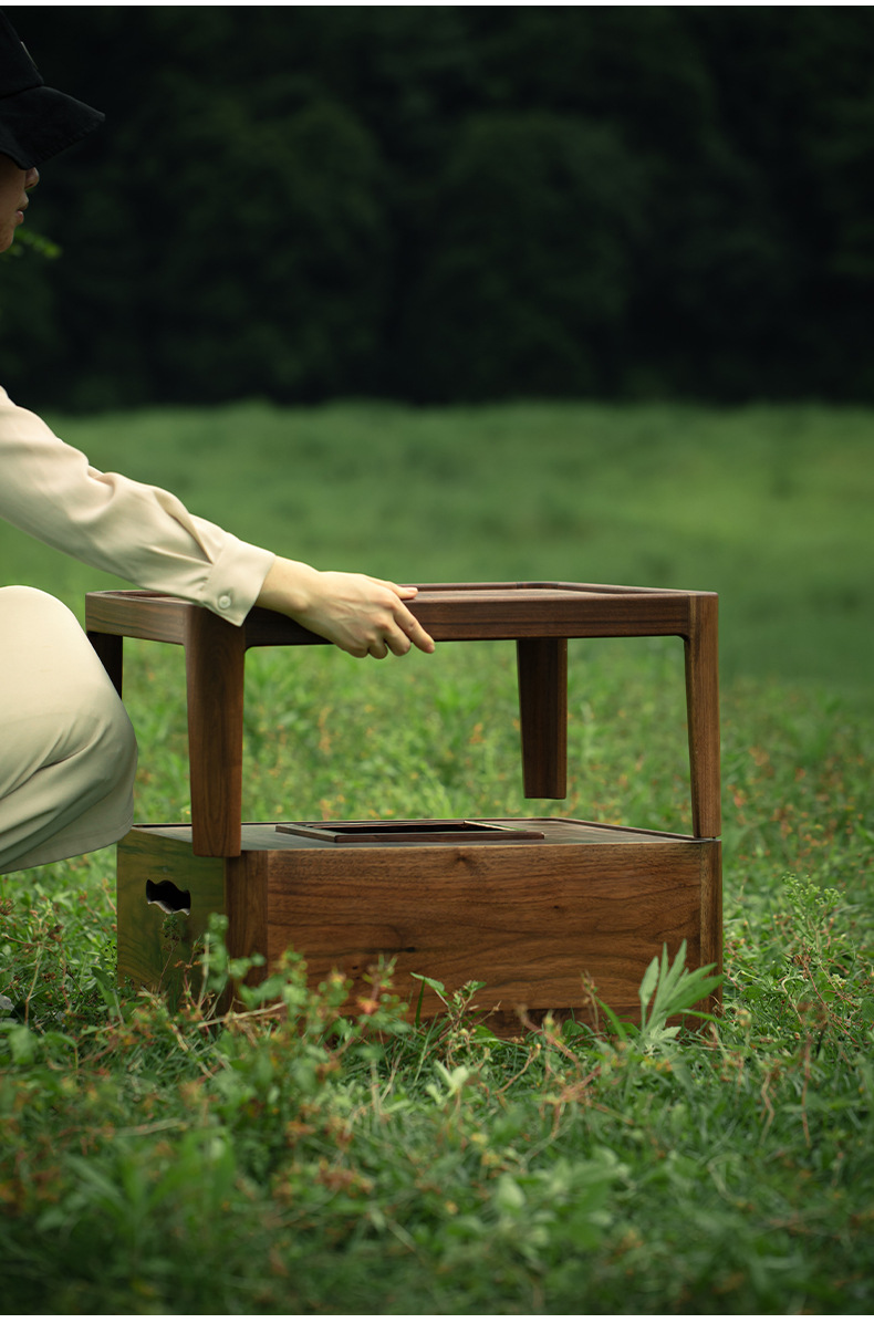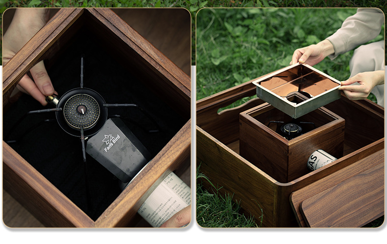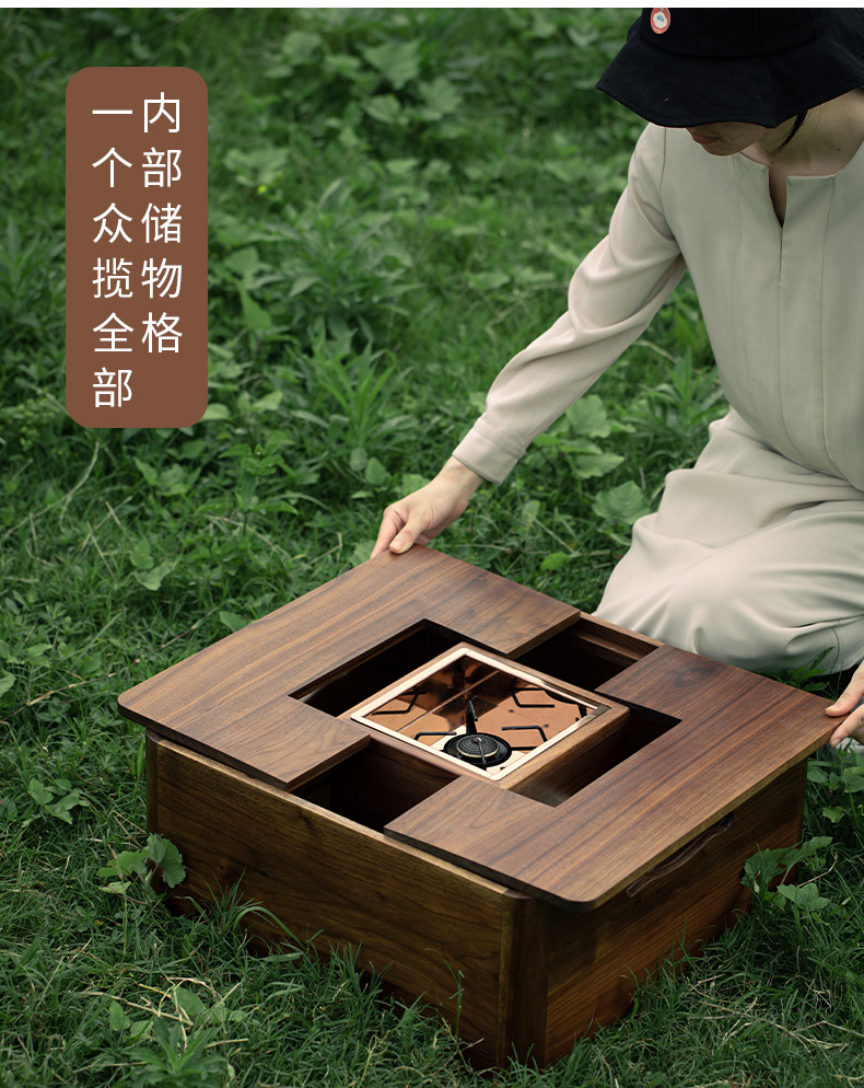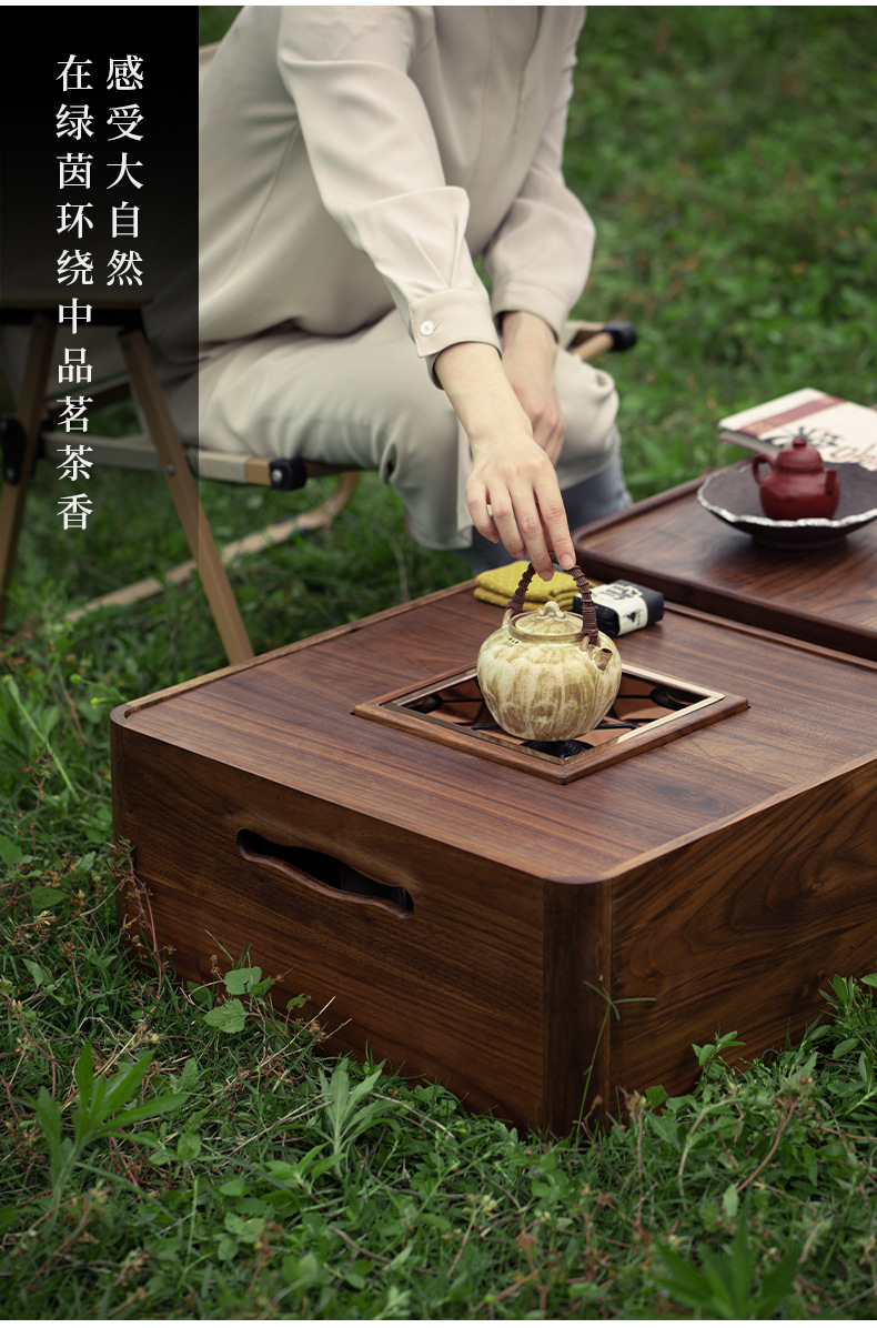 북미 블랙 호두 나무 용광로 차 요리 탄소 스토브 숯 테이블 야외 전기 세라믹 스토브 야외 카드 스토브 캠핑 바베큐 티 테이블