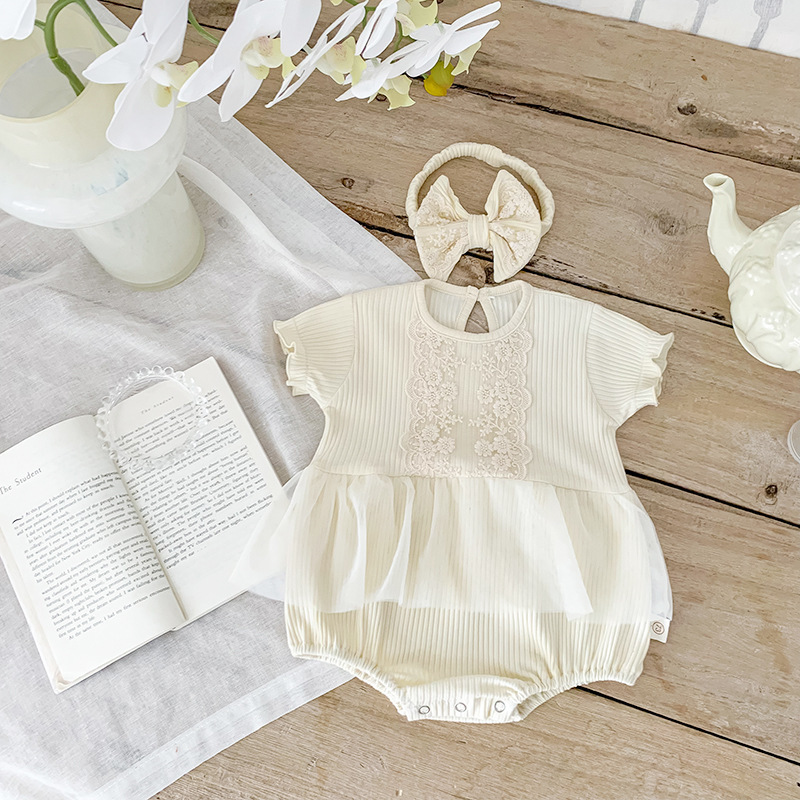 INS 여름 아기 소녀 공주 레이스 점프 슈트 백일 오래 된 원피스 아기 메쉬 삼각형 랩 방귀 옷