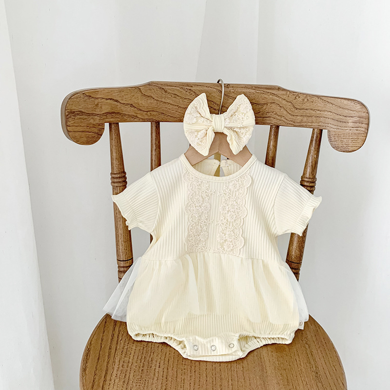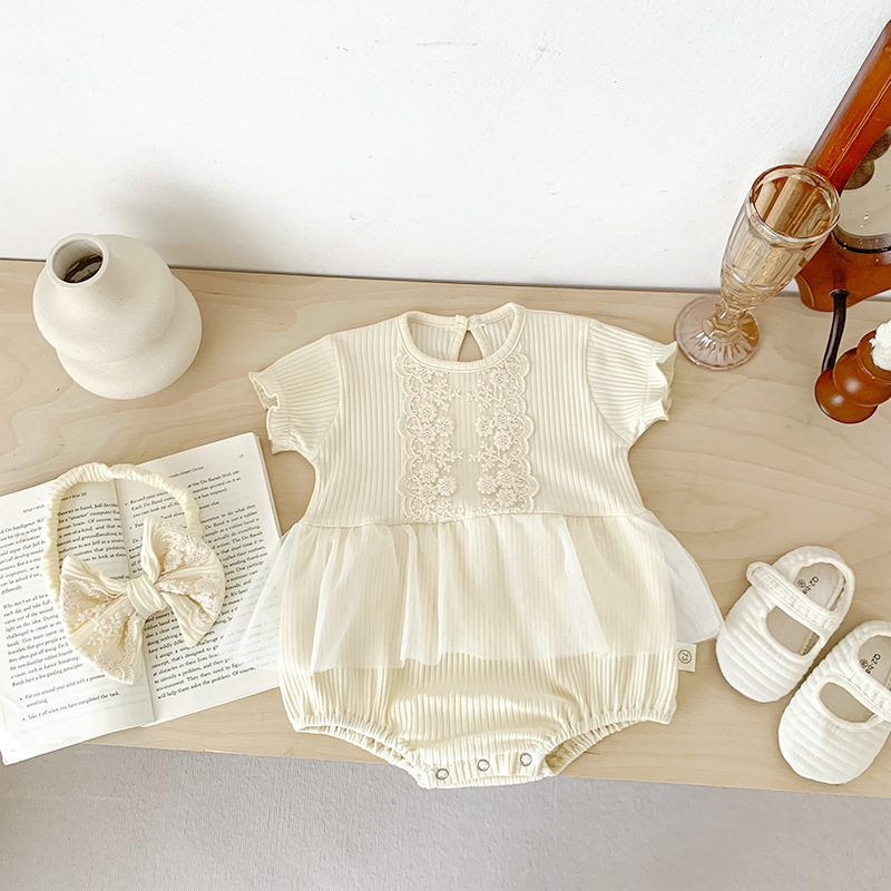 INS 여름 아기 소녀 공주 레이스 점프 슈트 백일 오래 된 원피스 아기 메쉬 삼각형 랩 방귀 옷스토어 가기