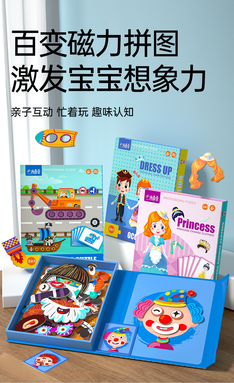 어린 아이들의 자기 퍼즐 3 ~ 6 세 원피스 자기 붙여 넣기 조기 교육 아기 2 소년 4 소녀 퍼즐 평면 그림 장난감스토어 가기