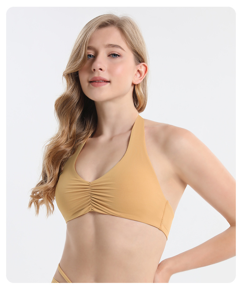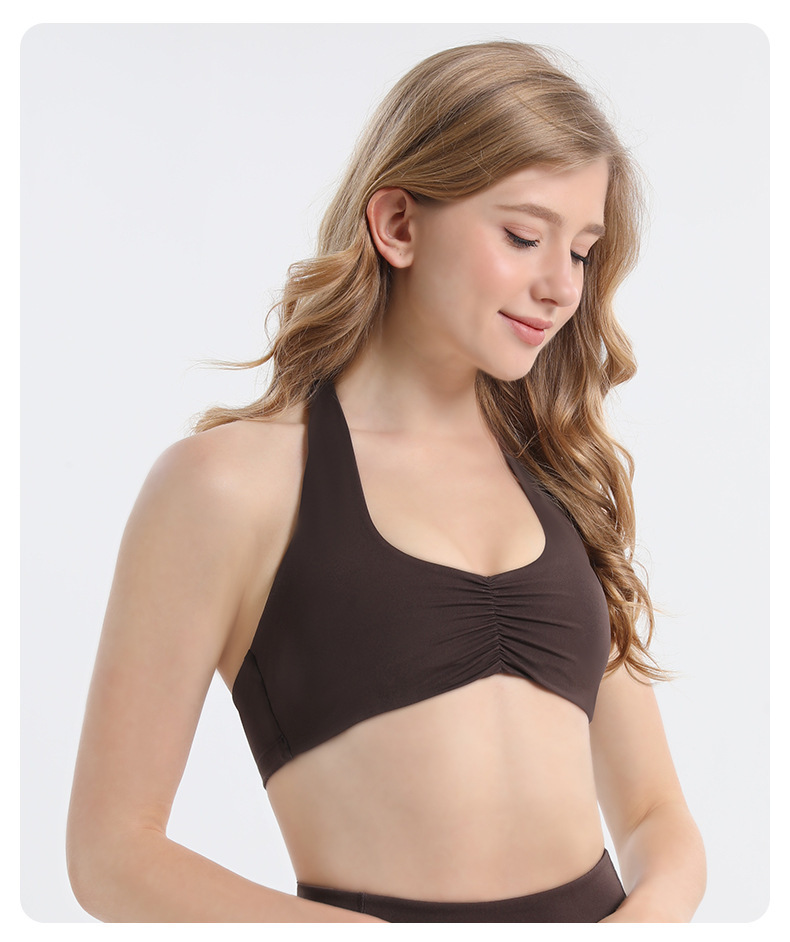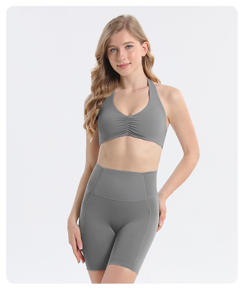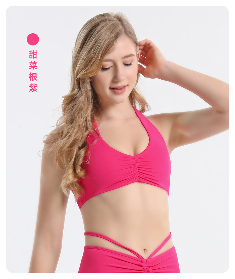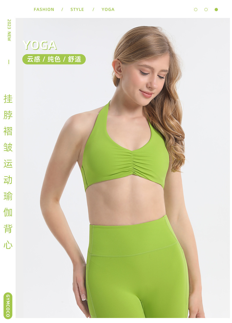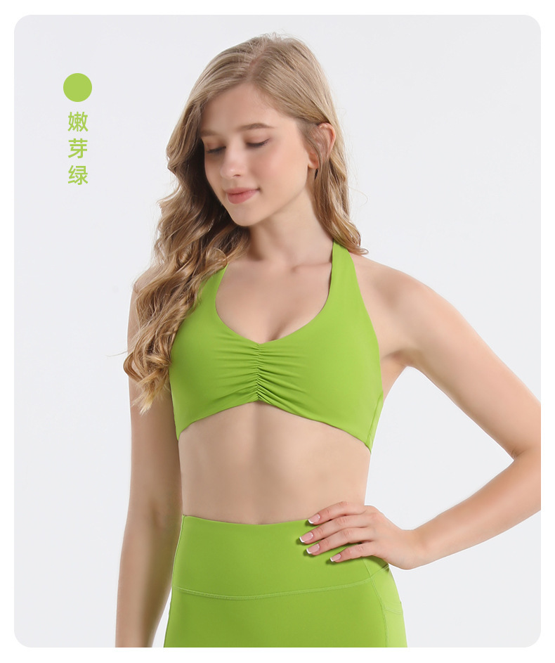 섹시한 스포츠 속옷 여성의 충격 방지 전면 중간 주름 요가 조끼 교수형 목 아름다운 등 달리기 피트니스 브래지어