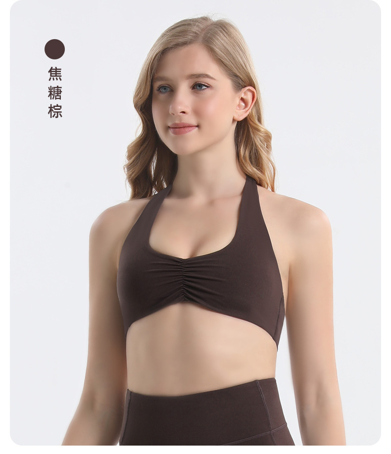 섹시한 스포츠 속옷 여성의 충격 방지 전면 중간 주름 요가 조끼 교수형 목 아름다운 등 달리기 피트니스 브래지어스토어 가기