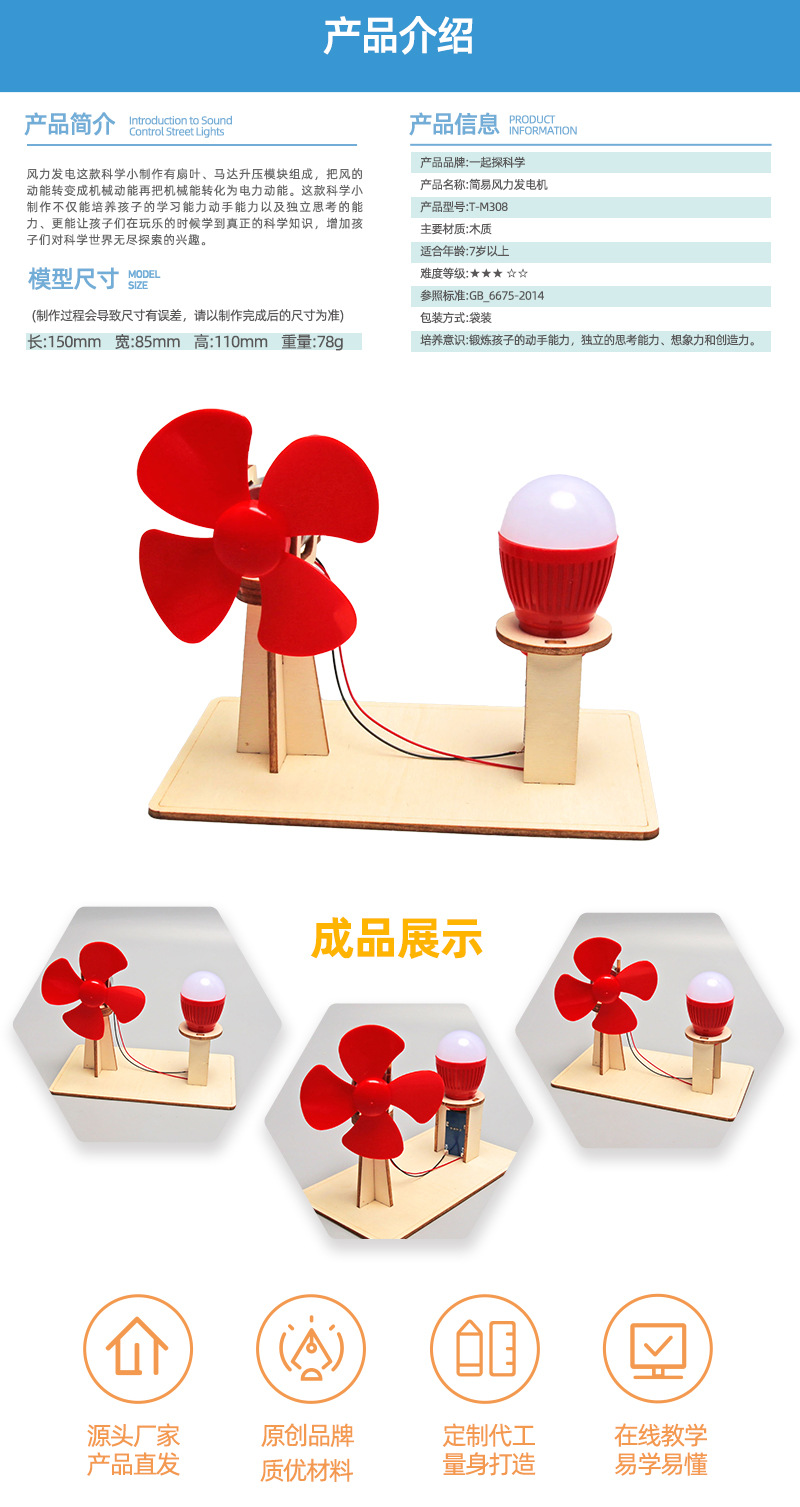 초등학생 과학 실험 놀이 교구 보조 과학 기술 소생산 재료 풍력 에너지 DIY 수동 간이 풍력 터빈스토어 가기