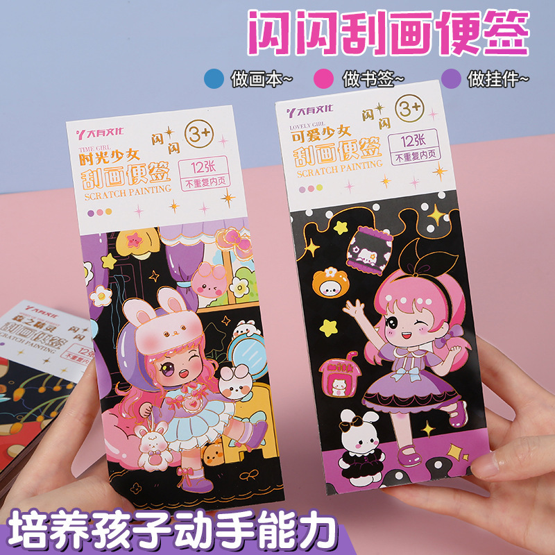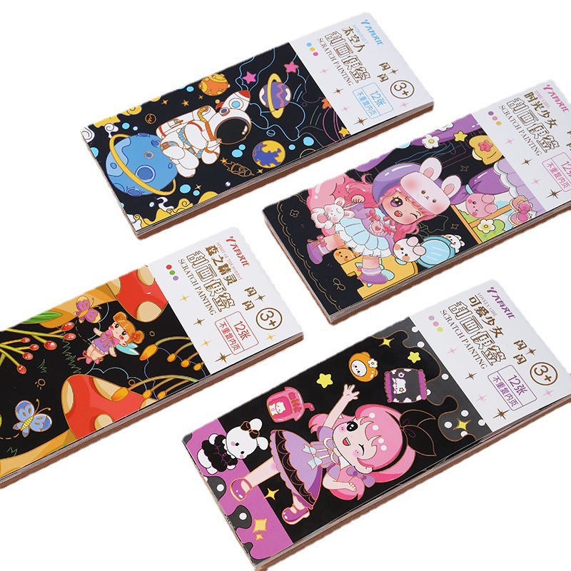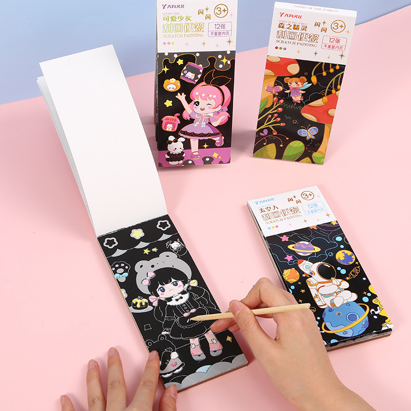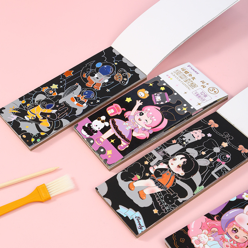 크리 에이 티브 어린이 스파클링 스크래치 노트 스크래치 왁스 종이 수채화 색칠하기 책 작은 소년과 소녀 그림 컬러 책 유치원