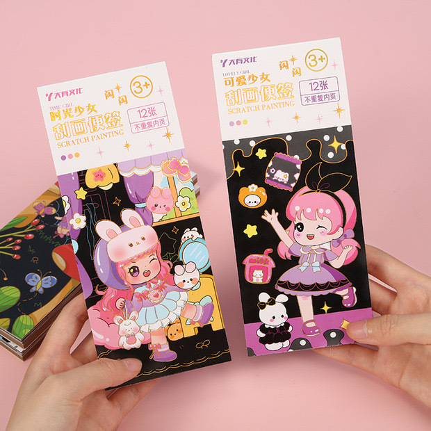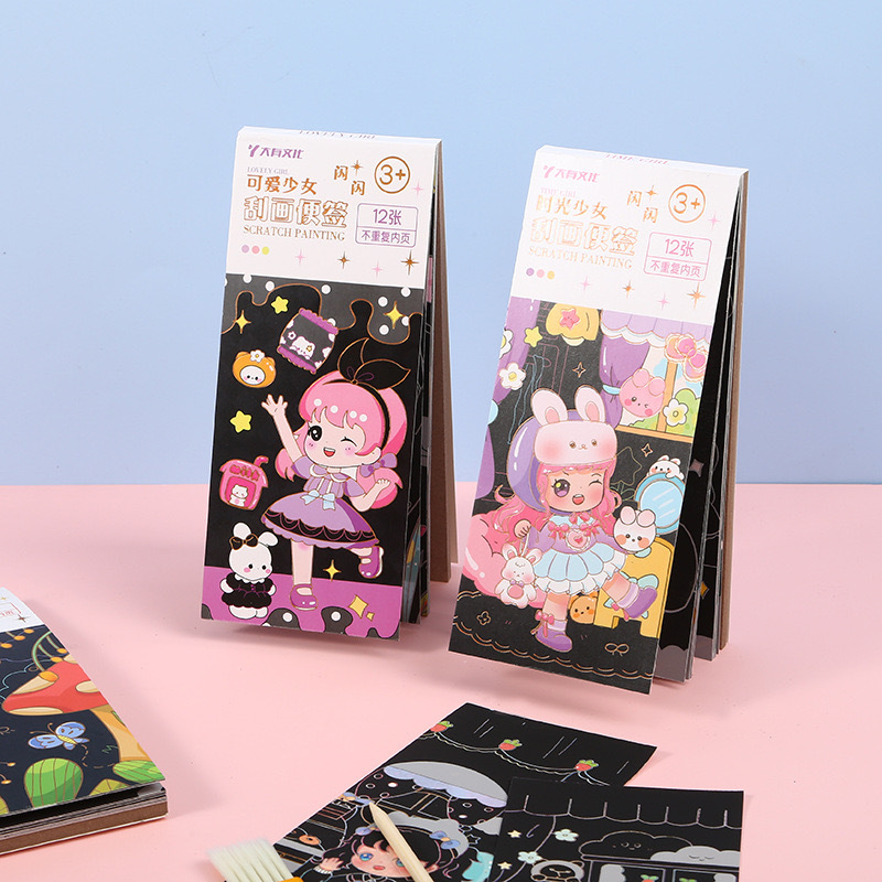 크리 에이 티브 어린이 스파클링 스크래치 노트 스크래치 왁스 종이 수채화 색칠하기 책 작은 소년과 소녀 그림 컬러 책 유치원스토어 가기