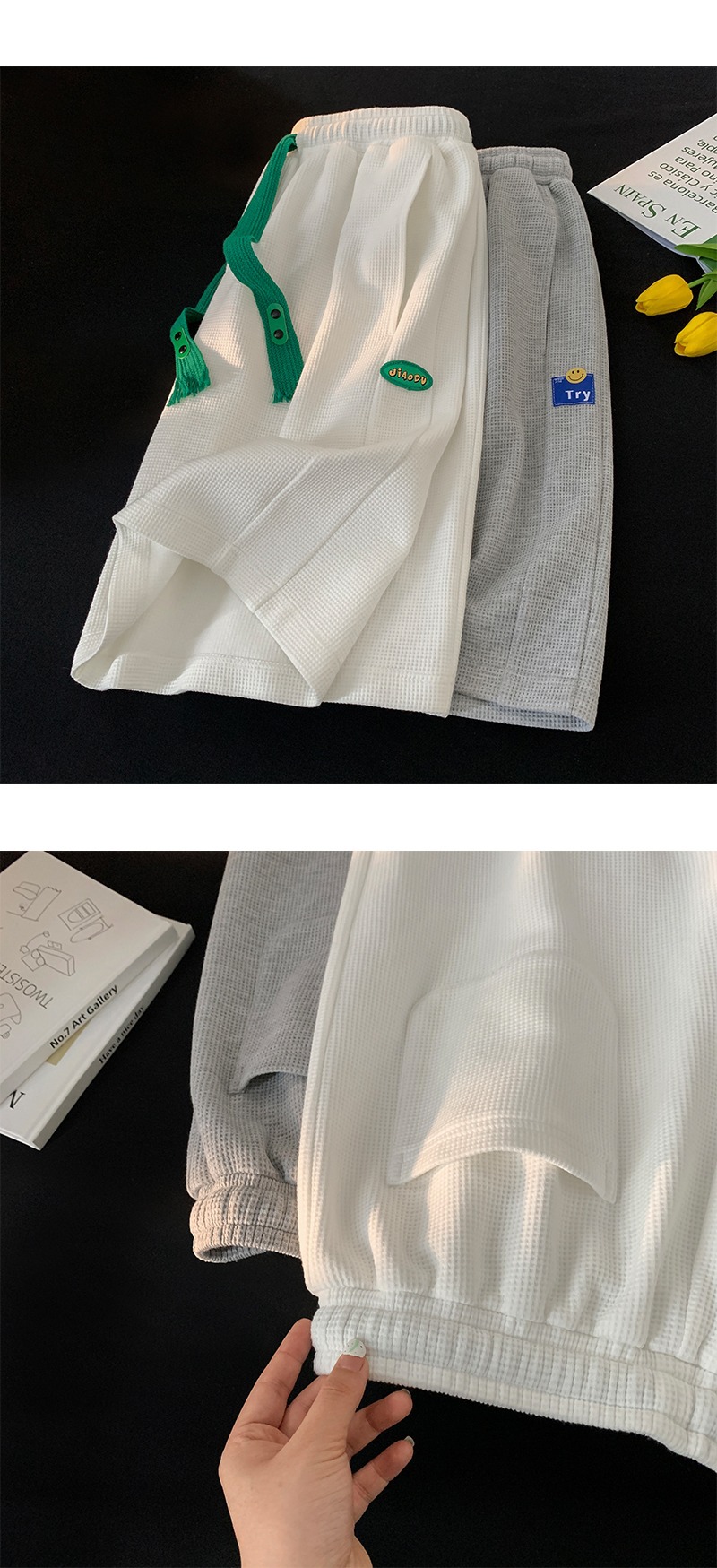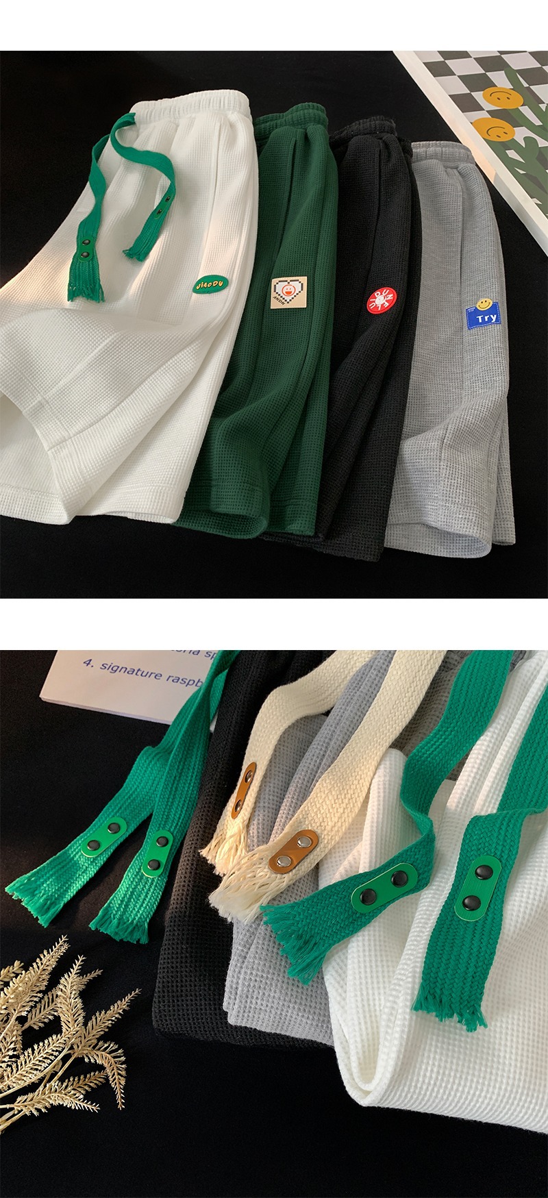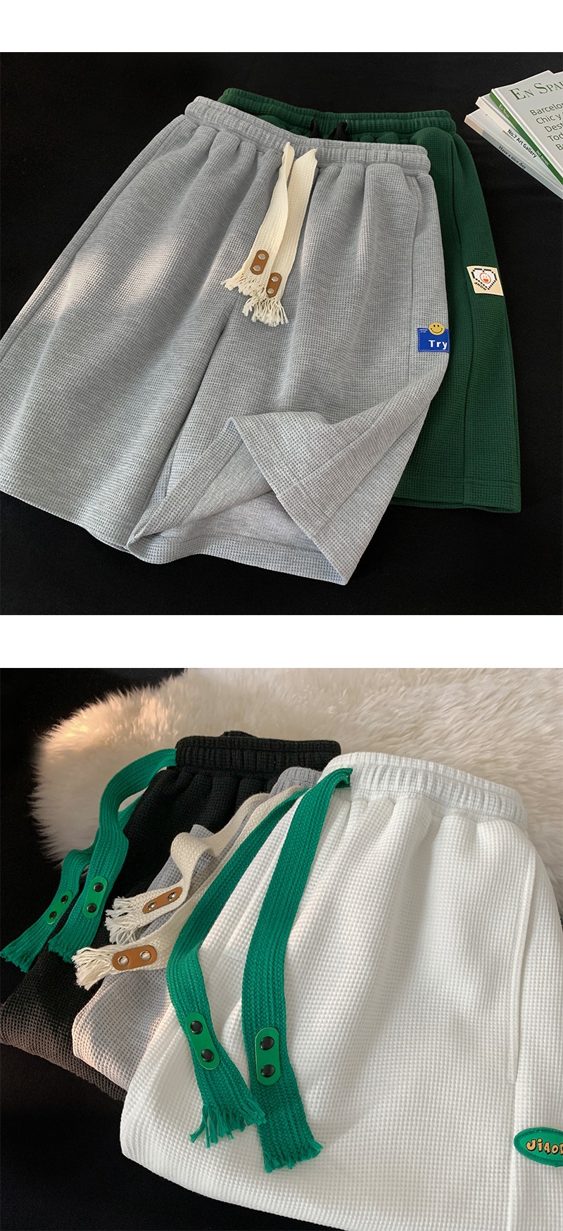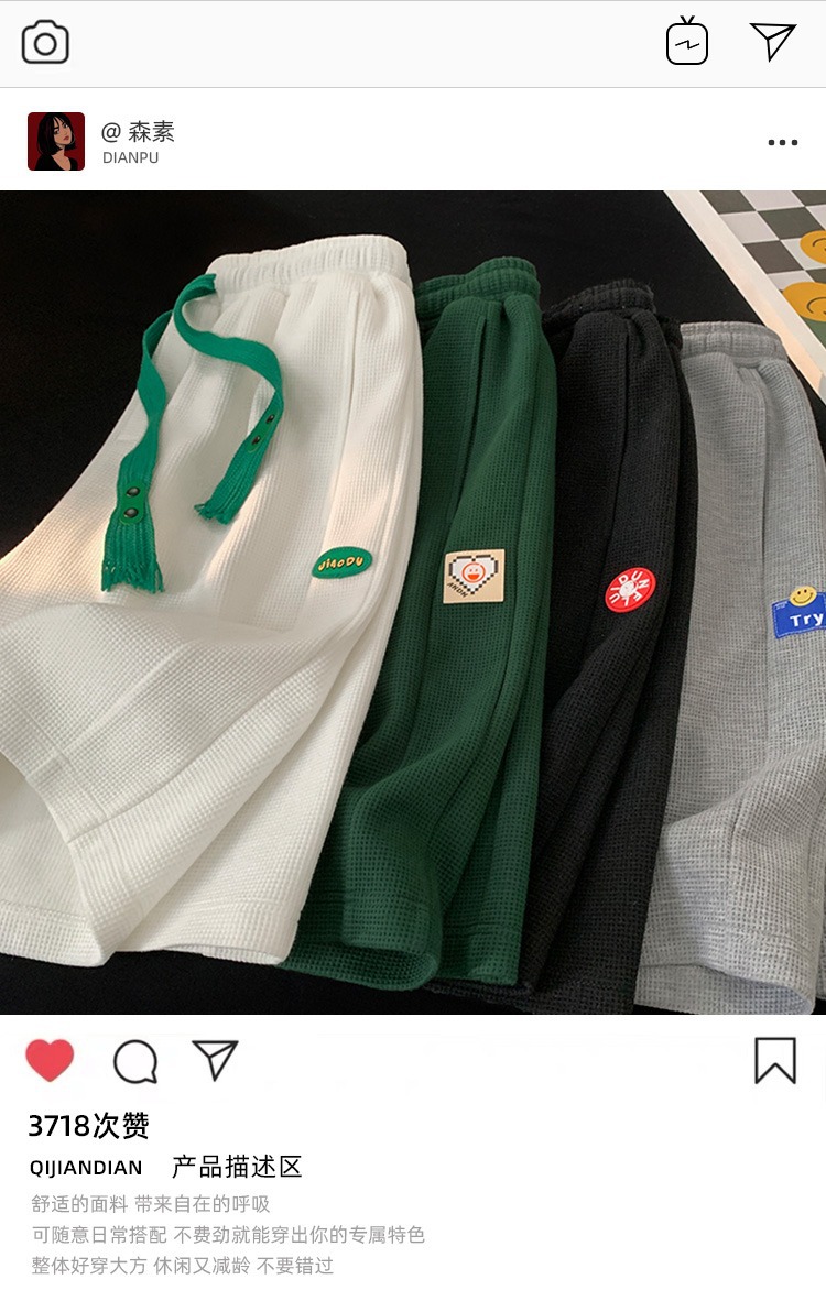 폭발적인 와플 반바지 남성용 여름 얇은 디자인 센스 바지 캐주얼 스포츠 겉옷 바지 트렌디스토어 가기