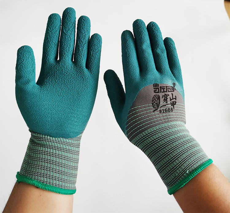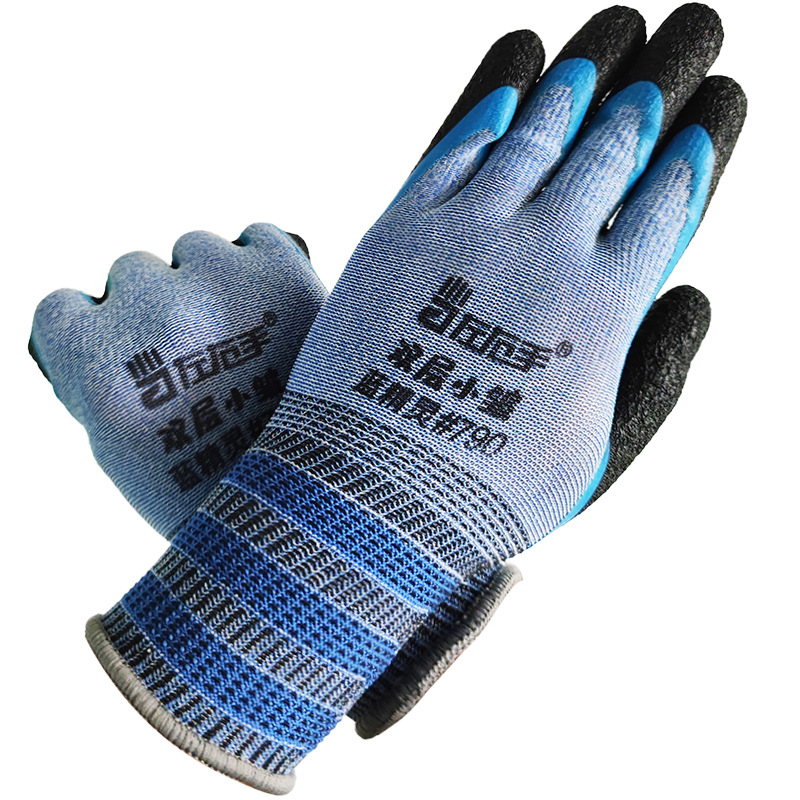 왼손 및 오른손 스머프 더블 레이어 작은 주름 미끄럼 방지 장갑 두꺼운 내마모성 이중 레이어 함침 통기성 노동 장갑