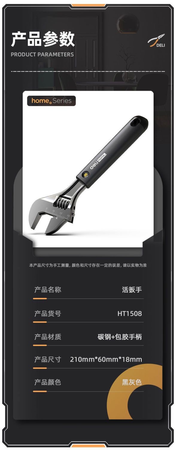 델리 홈 라이브 렌치 8 인치 코팅 다기능 조절 렌치 홈 정비 델리 라이브 렌치 HT1508스토어 가기