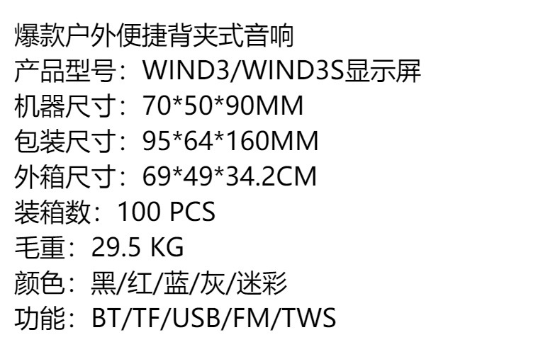 크로스 보더 폭발 야외 백 클립 타입 오디오 야외 라이딩 버클 오디오 서브우퍼 휴대용 카드 소형 스피커