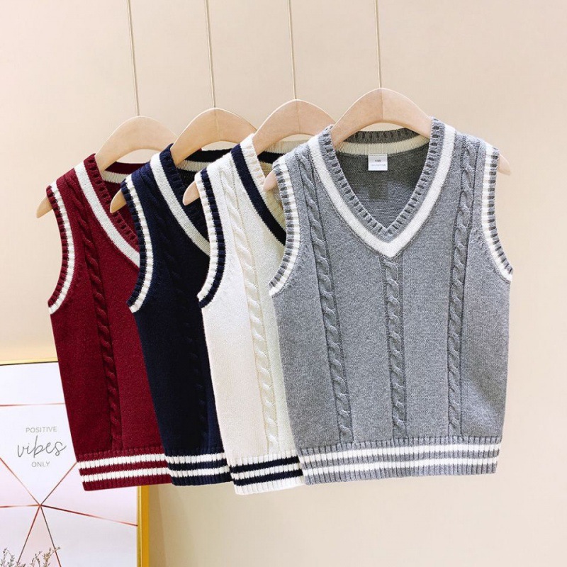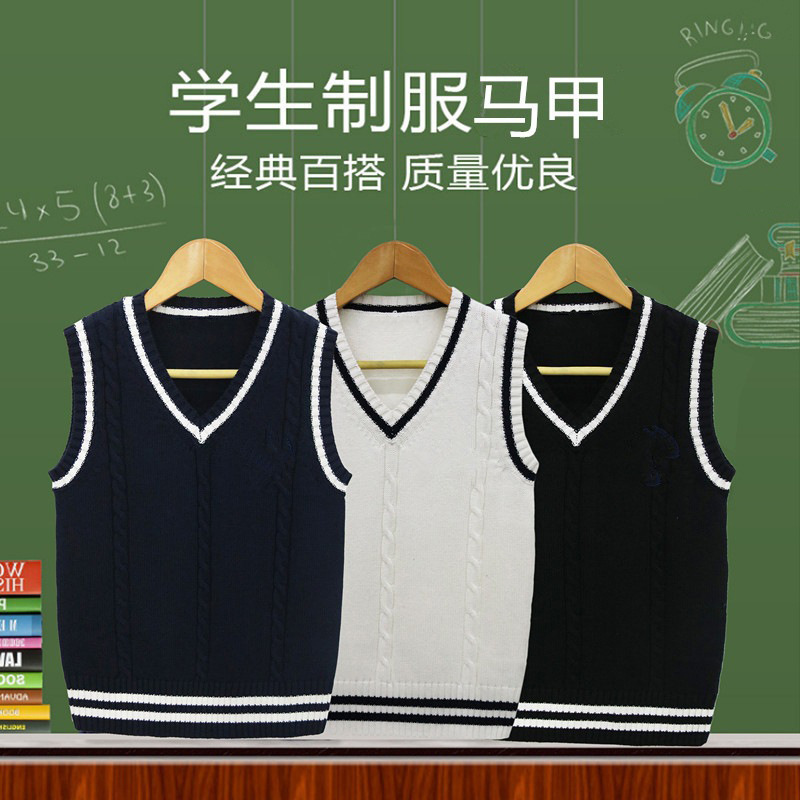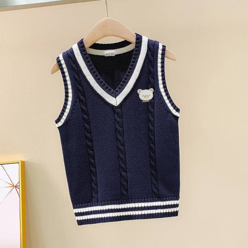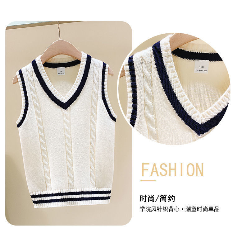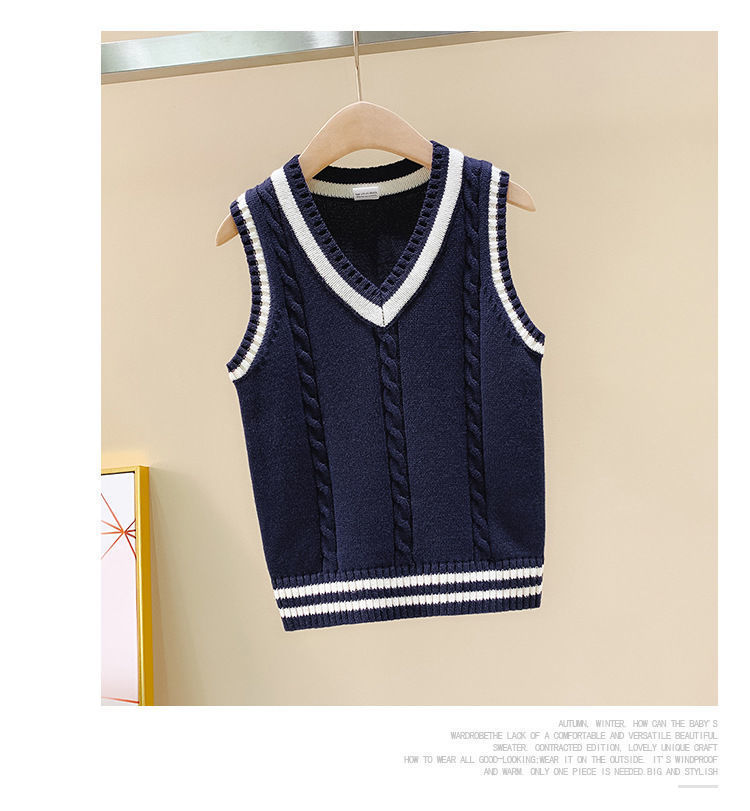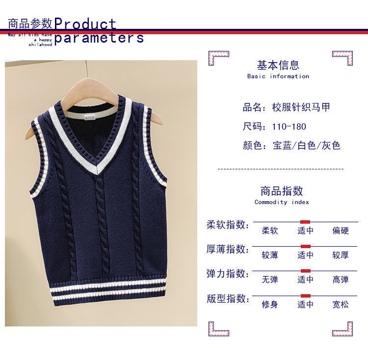 어린이 니트 조끼 2025 봄 가을 여아용 모직 조끼 학교 스타일 브이넥 남아용 교복 스웨터 조끼스토어 가기