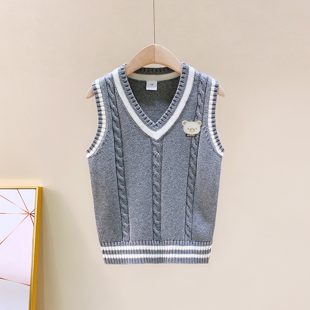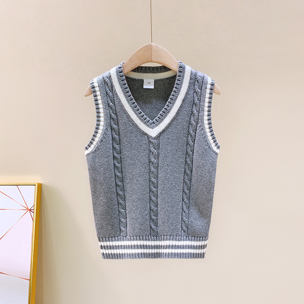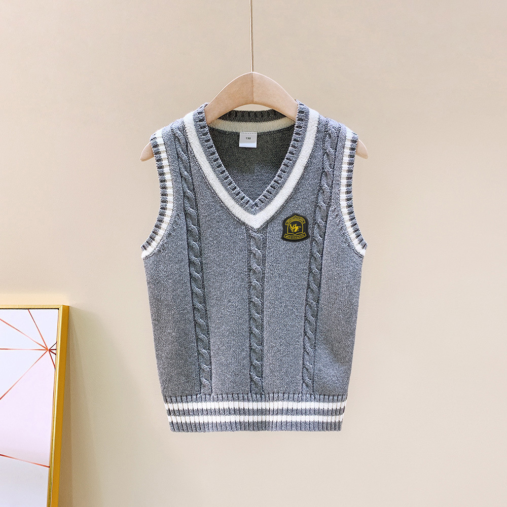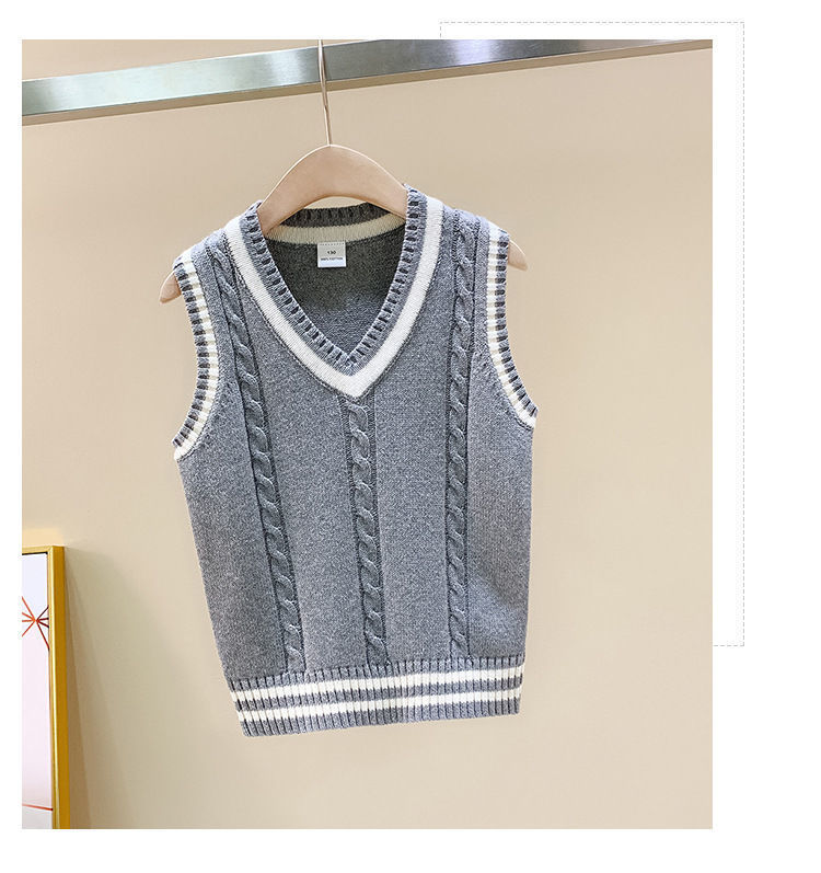 어린이 니트 조끼 2025 봄 가을 여아용 모직 조끼 학교 스타일 브이넥 남아용 교복 스웨터 조끼스토어 가기