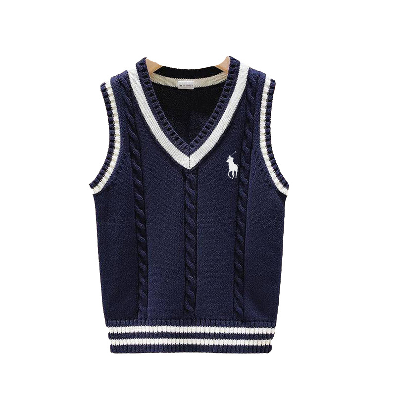 어린이 니트 조끼 2025 봄 가을 여아용 모직 조끼 학교 스타일 브이넥 남아용 교복 스웨터 조끼
