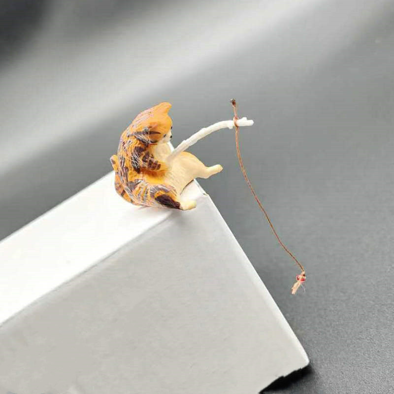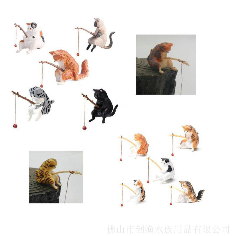 새끼 고양이 낚시 장식품 물고기 탱크 조경 야옹 낚시 좋은 날씨 레저 고양이 낚시 장식