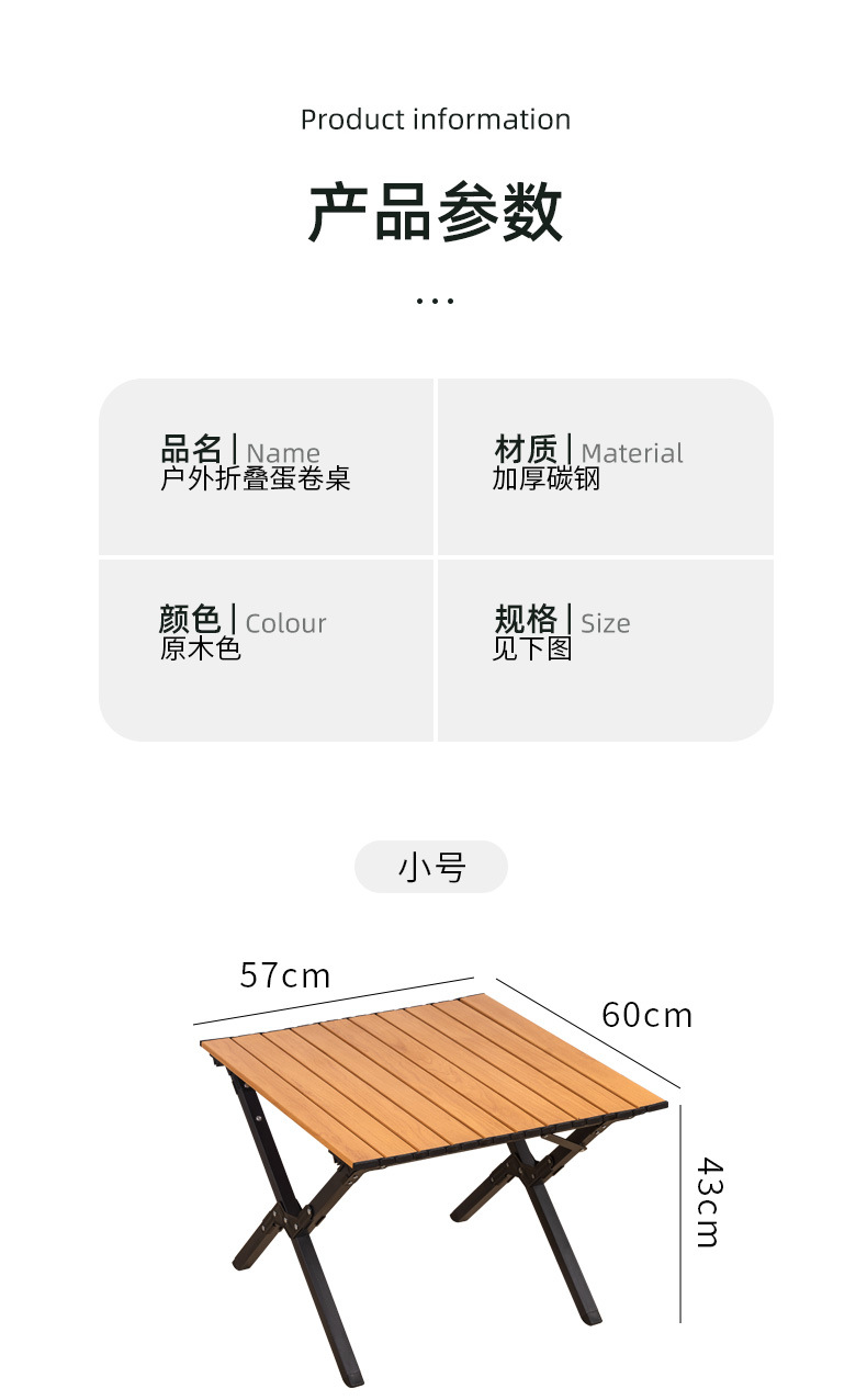 • [업그레이드된 데스크탑 두꺼운 테이블 다리] 나뭇결 에그롤 테이블 - 소형(테이블 보관 가방 포함)