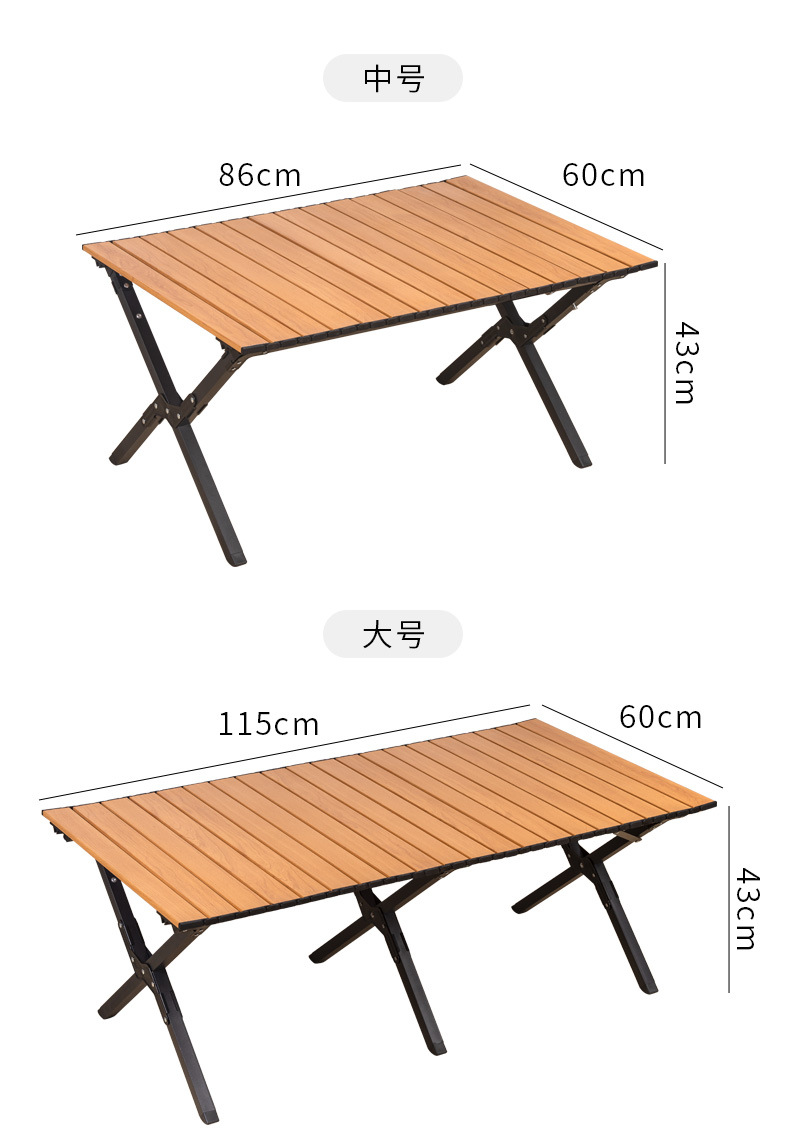 • [항공 알루미늄 합금] 나뭇결 계란말이 테이블 - 중간 크기(테이블 보관 가방 포함)