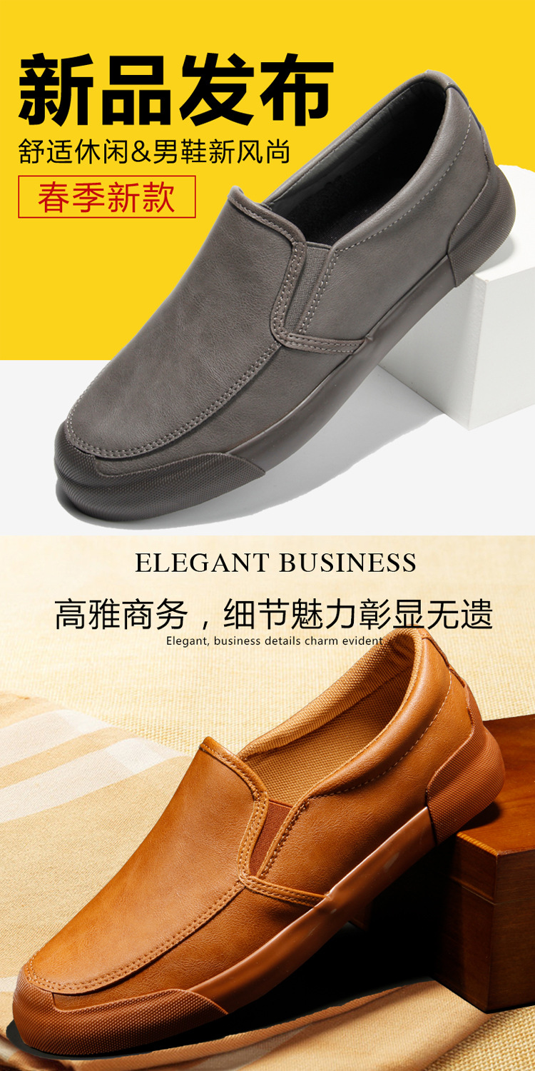 클래식 레트로 남성 가죽 신발 봄과 가을 새로운 통기성 캐주얼 다목적 슬립 온 유행 패션 가죽 신발 남성 신발스토어 가기