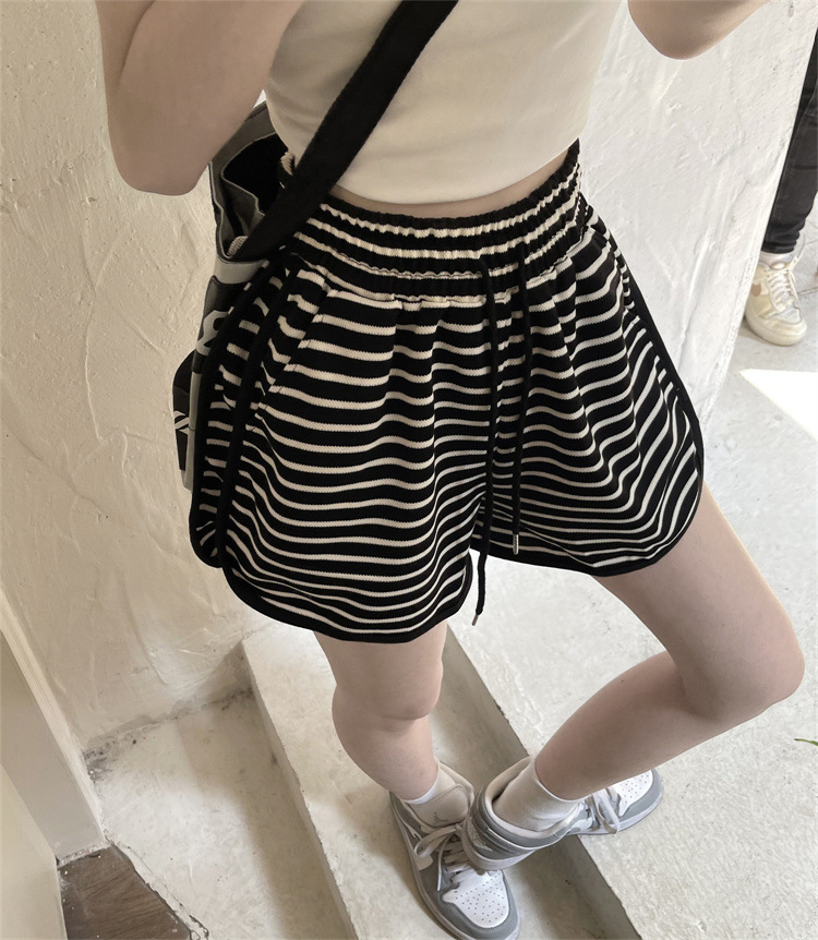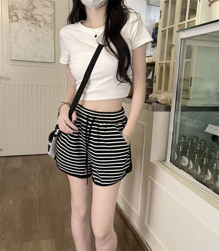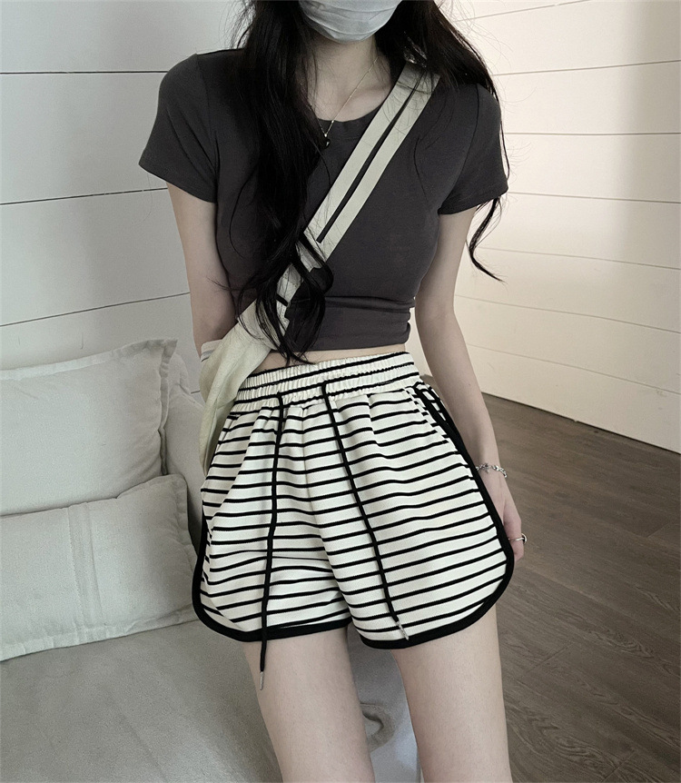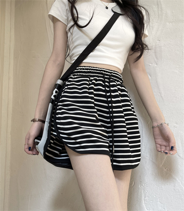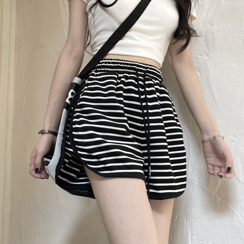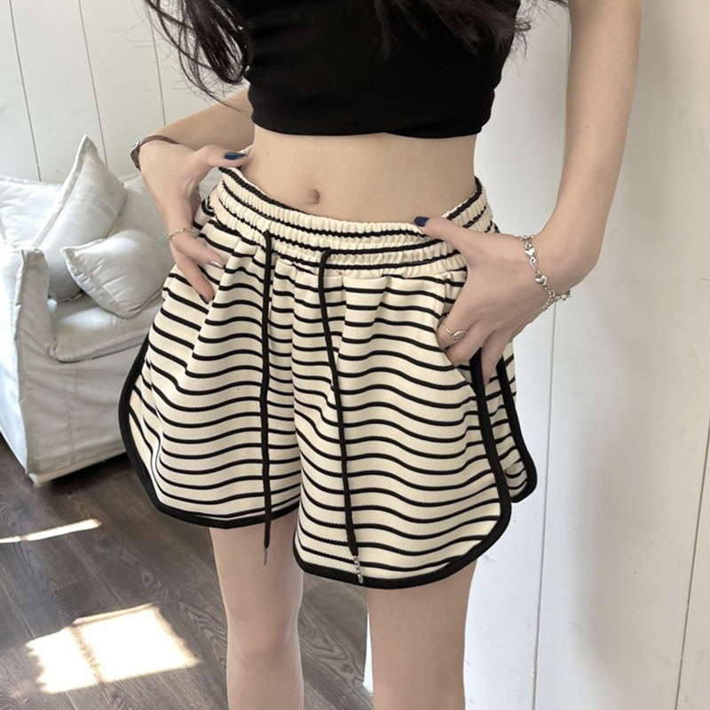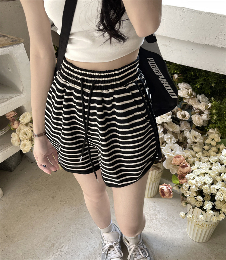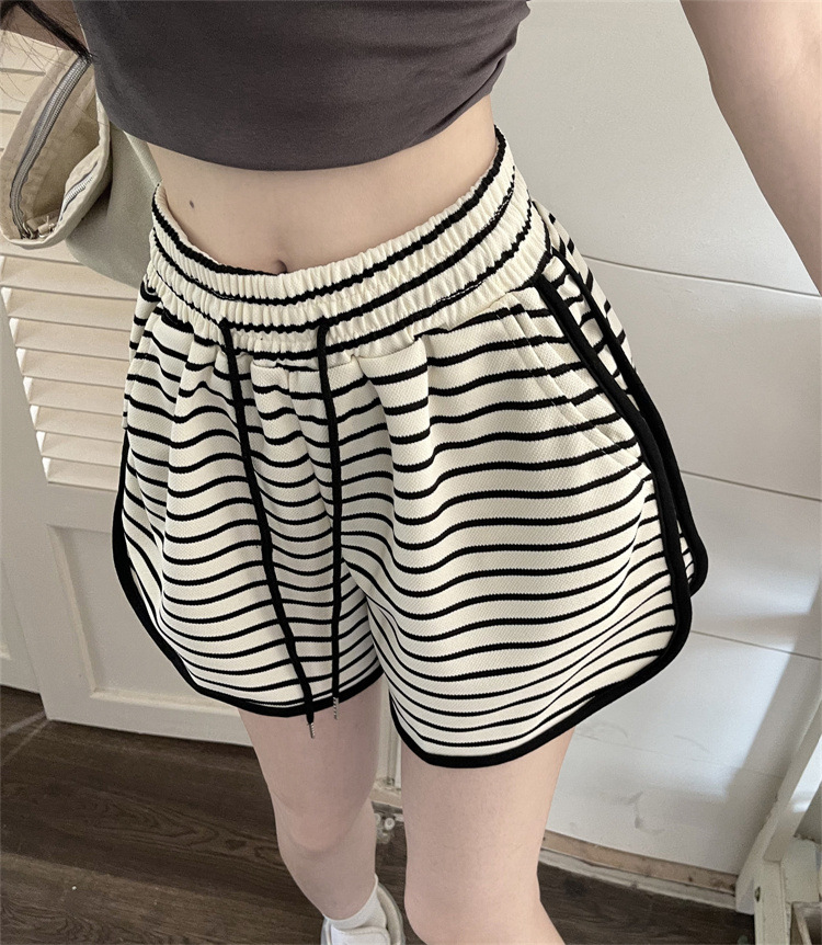 스트라이프 스포츠 반바지 여성 여름 새로운 하이 웨이스트 루즈 슬리밍 지방 MM 대형 7부 바지 캐주얼 핫팬츠 겉옷스토어 가기