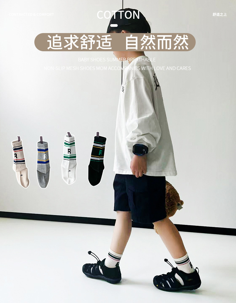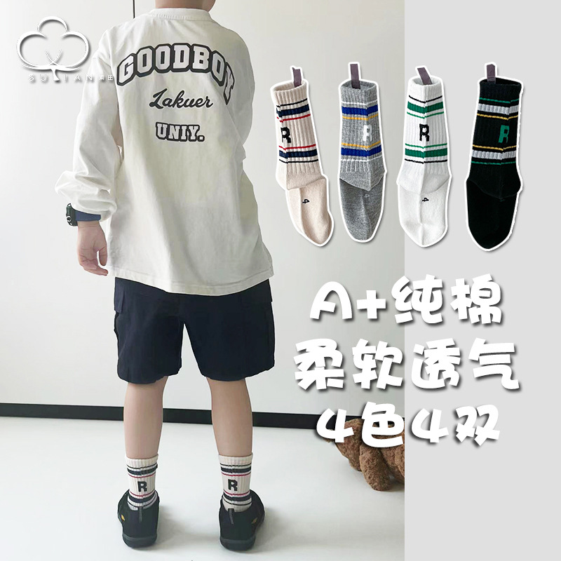 어린이 양말 여름 얇은 중간 튜브 면 양말 한국 스타일 트렌디 R 소년 메쉬 양말 소녀 아기 봄과 가을스토어 가기