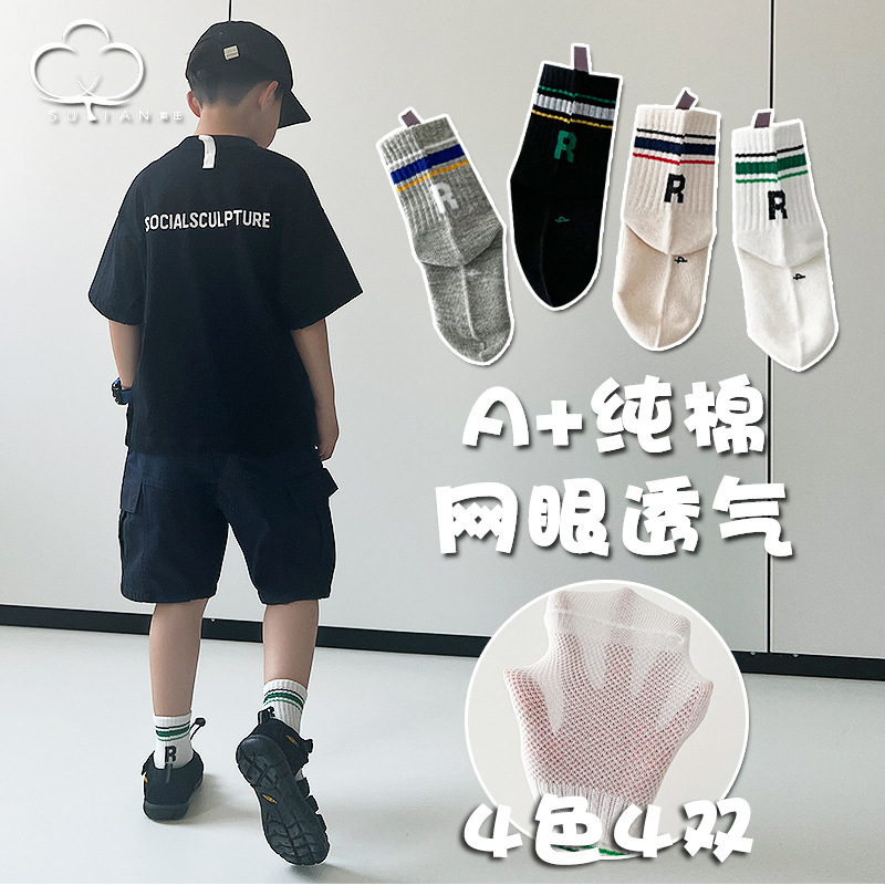 어린이 양말 여름 얇은 중간 튜브 면 양말 한국 스타일 트렌디 R 소년 메쉬 양말 소녀 아기 봄과 가을