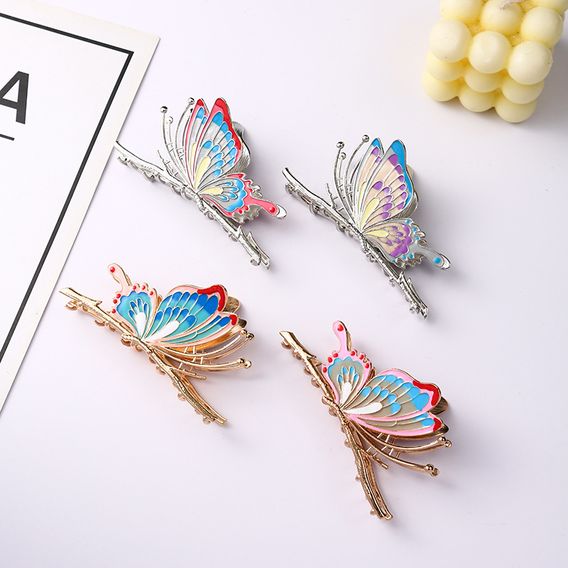 인터넷 연예인 재고 9 색 그린 나비 우아한 골동품 머리핀 뒤 머리 머리 모자 상어 잡아 여성 모자