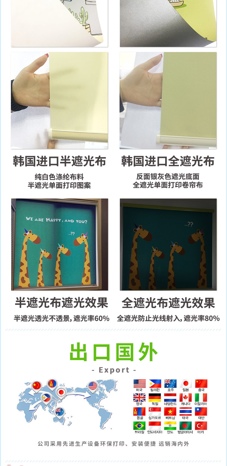 I9AT 롤러 셔터 커튼 어린이 방 침실 주방 롤러 양산 인쇄 전체 음영 리프팅 블라인드 무료스토어 가기