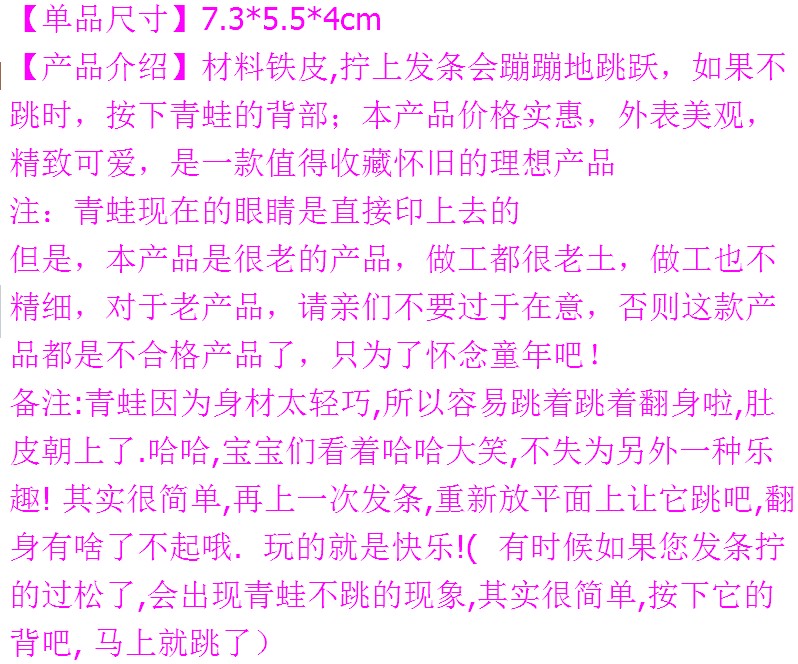 주석 개구리 향수 시계 장난감 아기 체인 주석 개구리 클래식 스톨 장난감 도매