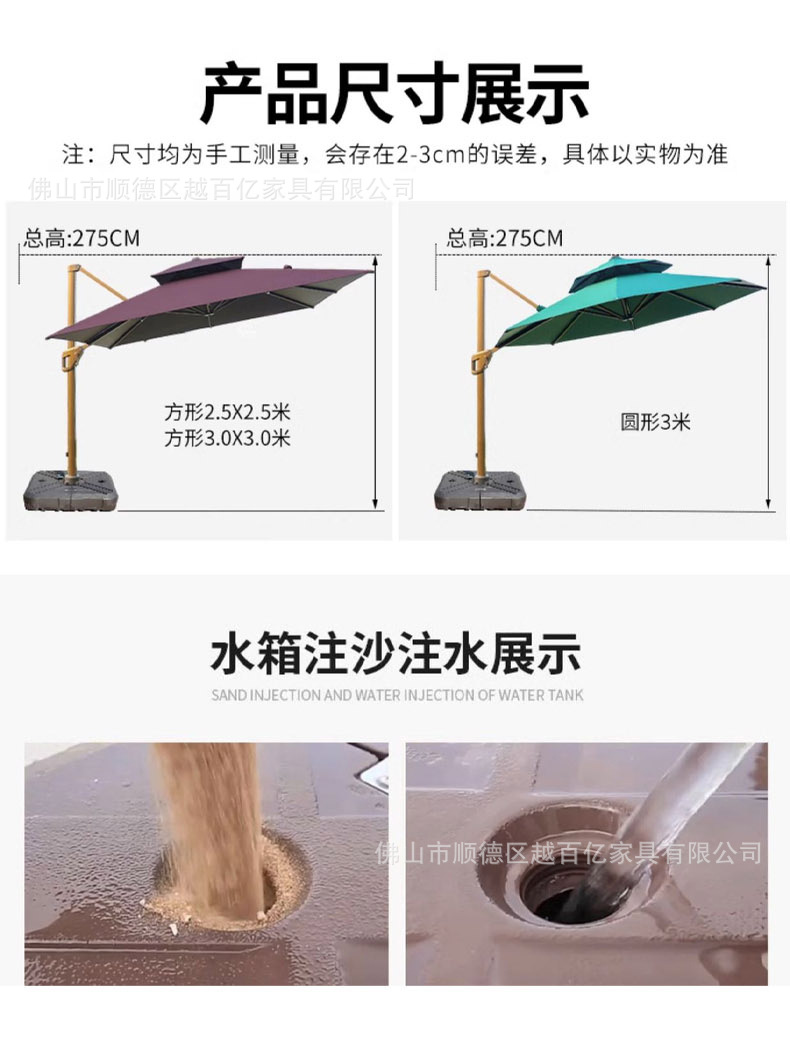 • (라이트 스트립) - 정사각형 2.5m - 베니스 우산(물이 채워진 베이스 180kg개 포함)