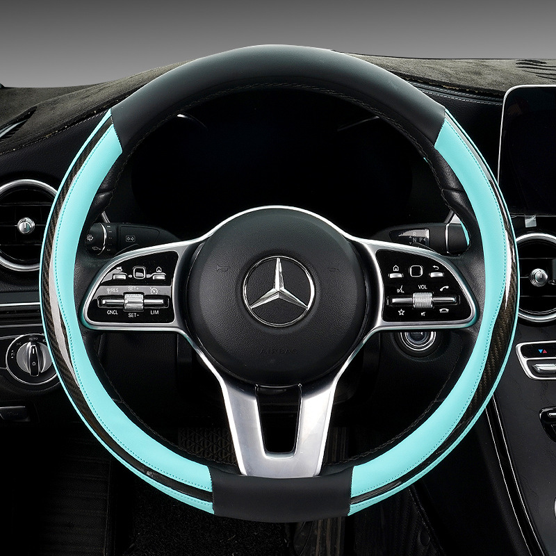 탄소 섬유 핸들 커버 스포츠 미끄럼 방지 통기성 자동차 핸들 커버 가죽 스티칭 자동차 핸들 커버 공장 아울렛스토어 가기