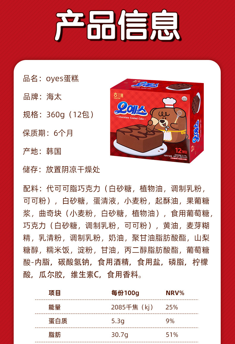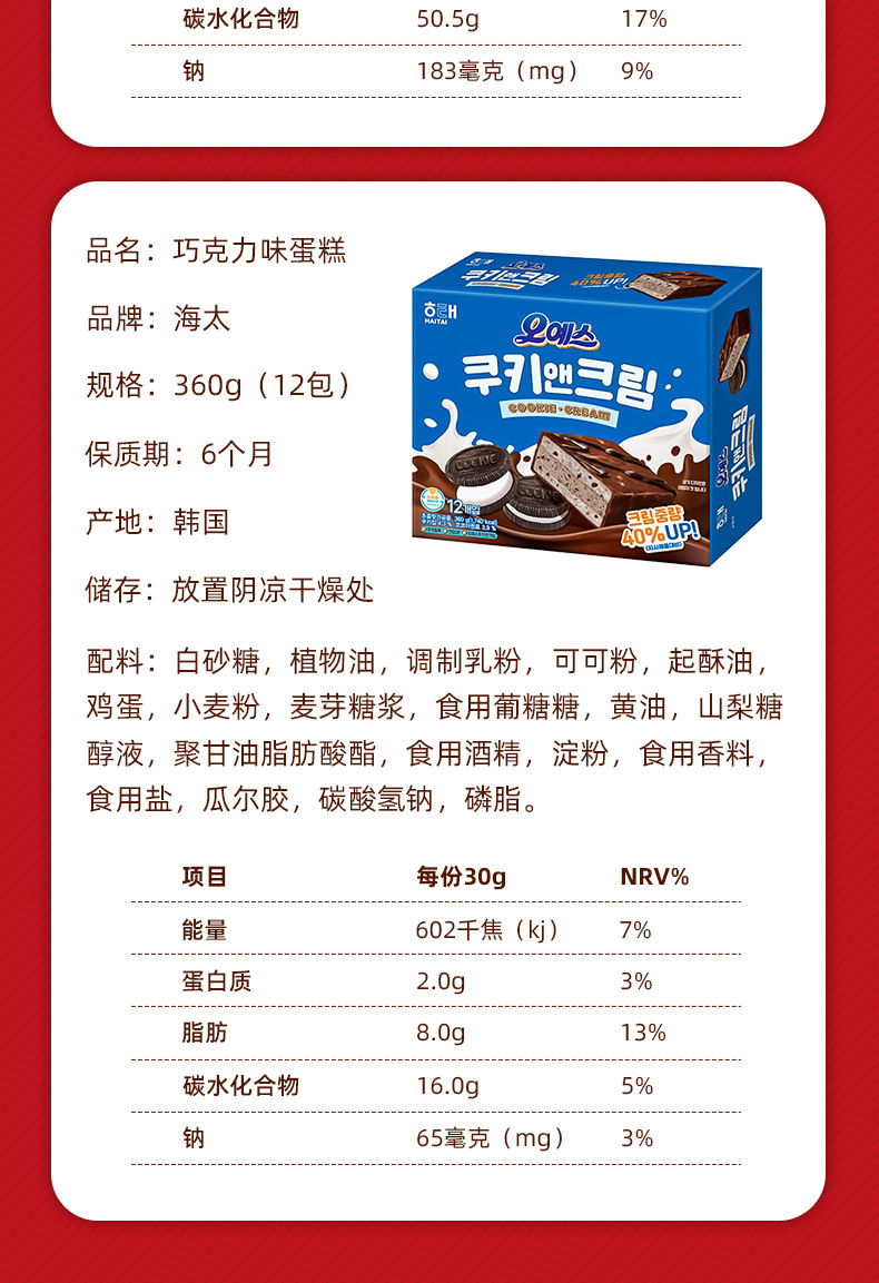 한국 수입 하이타이 오일 초콜릿 케이크 파이 360g 초콜릿 쿠키 케이크 파이 스낵 레저스토어 가기