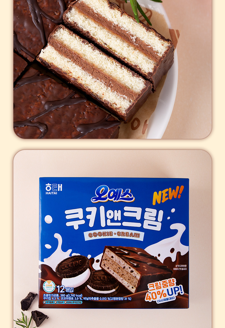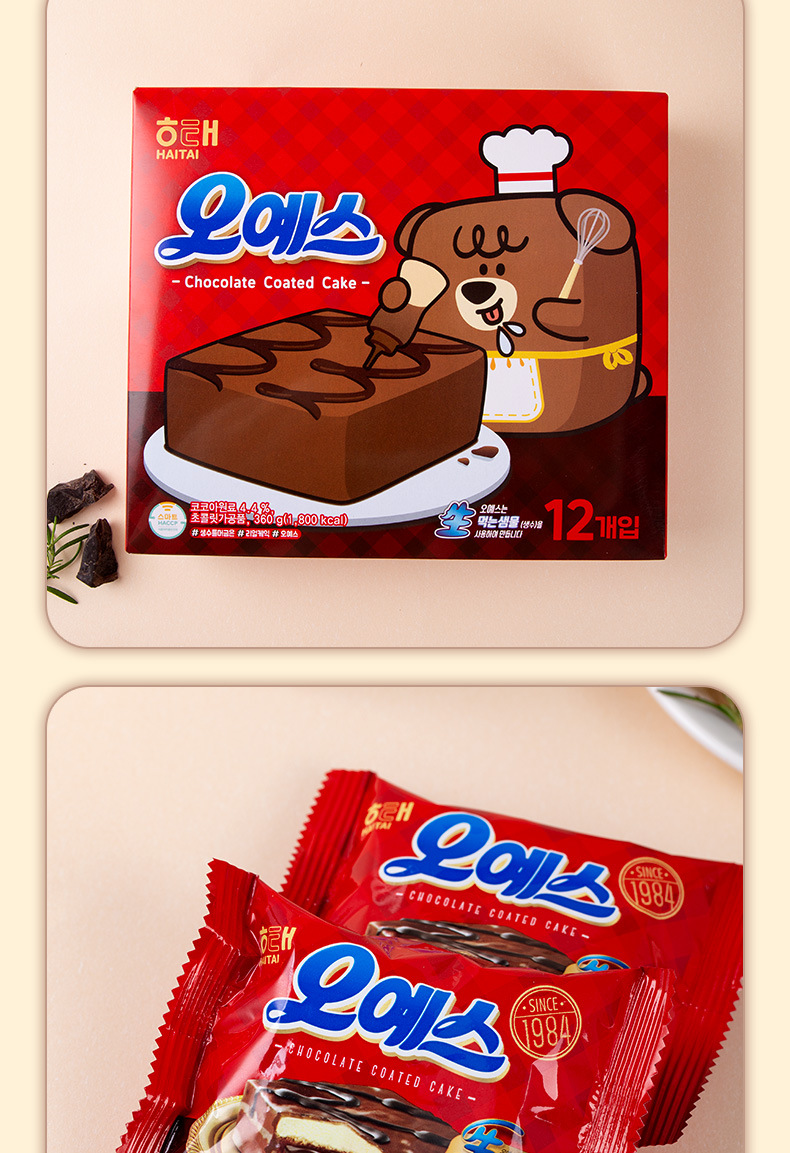 한국 수입 하이타이 오일 초콜릿 케이크 파이 360g 초콜릿 쿠키 케이크 파이 스낵 레저