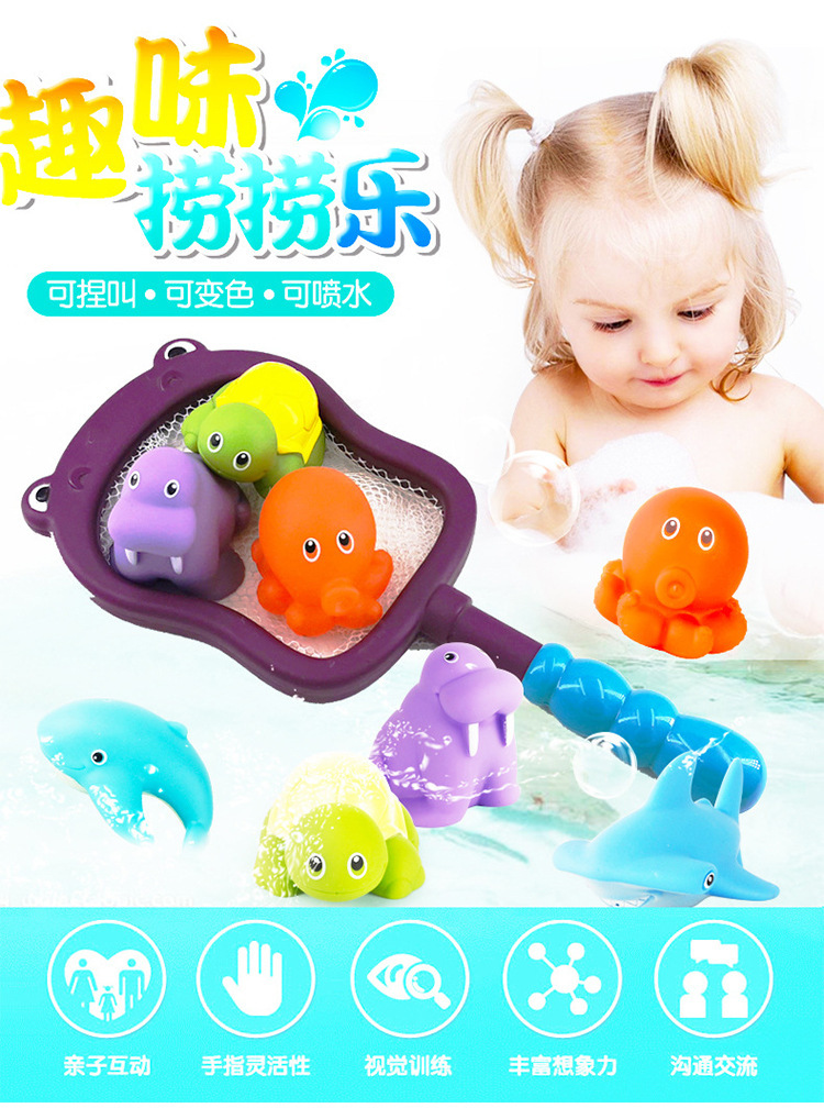 크로스 보더 어린이 낚시 물고기 놀이 물고기 낚시 장난감 아기 목욕 물 놀이 장난감 상어 낚시 비닐 동물 장난감스토어 가기