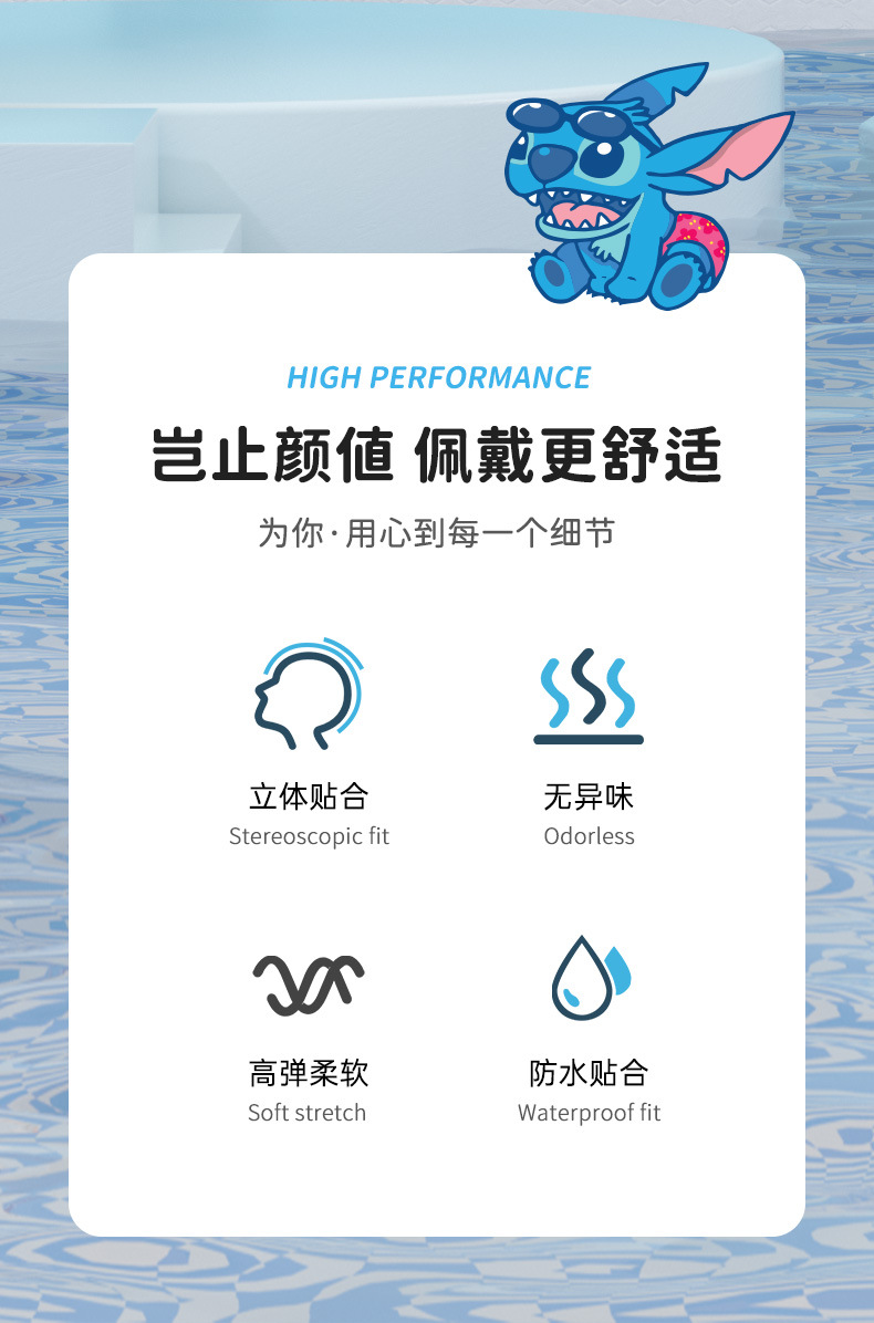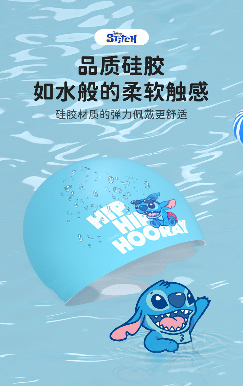 [활동] 스티치 실리콘 수영 모자 소년과 소녀 스티치 다이빙 모자 방수 실리콘 수영 모자