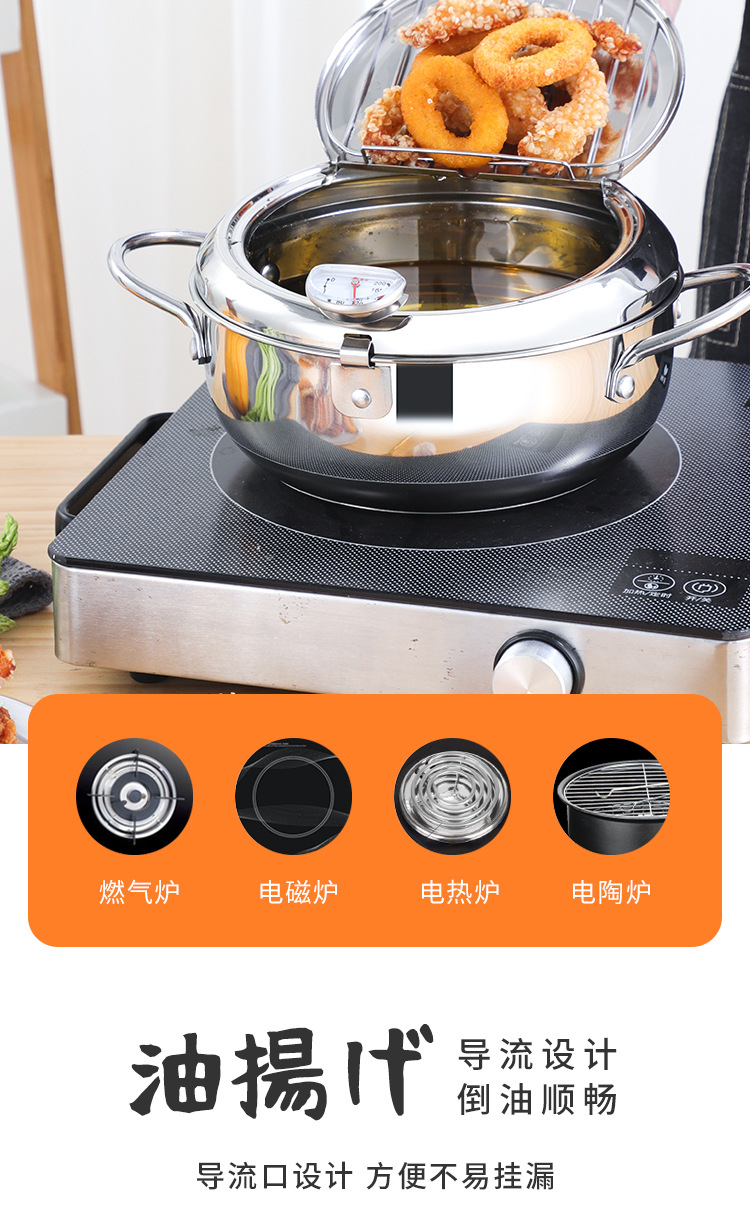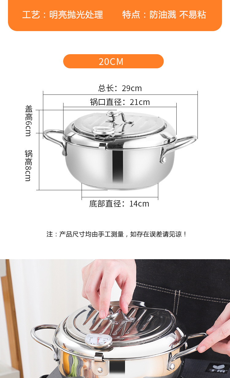 스트레이너 냄비 뚜껑 온도계 오일 랙 온도 제어 가정용 304 스테인레스 스틸 일본 튀김 작은 프라이어스토어 가기