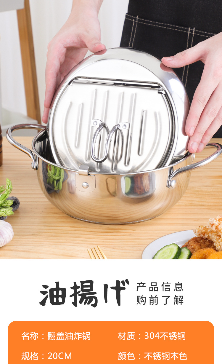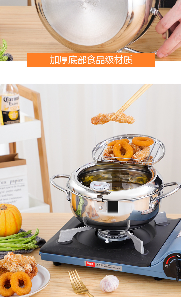 스트레이너 냄비 뚜껑 온도계 오일 랙 온도 제어 가정용 304 스테인레스 스틸 일본 튀김 작은 프라이어