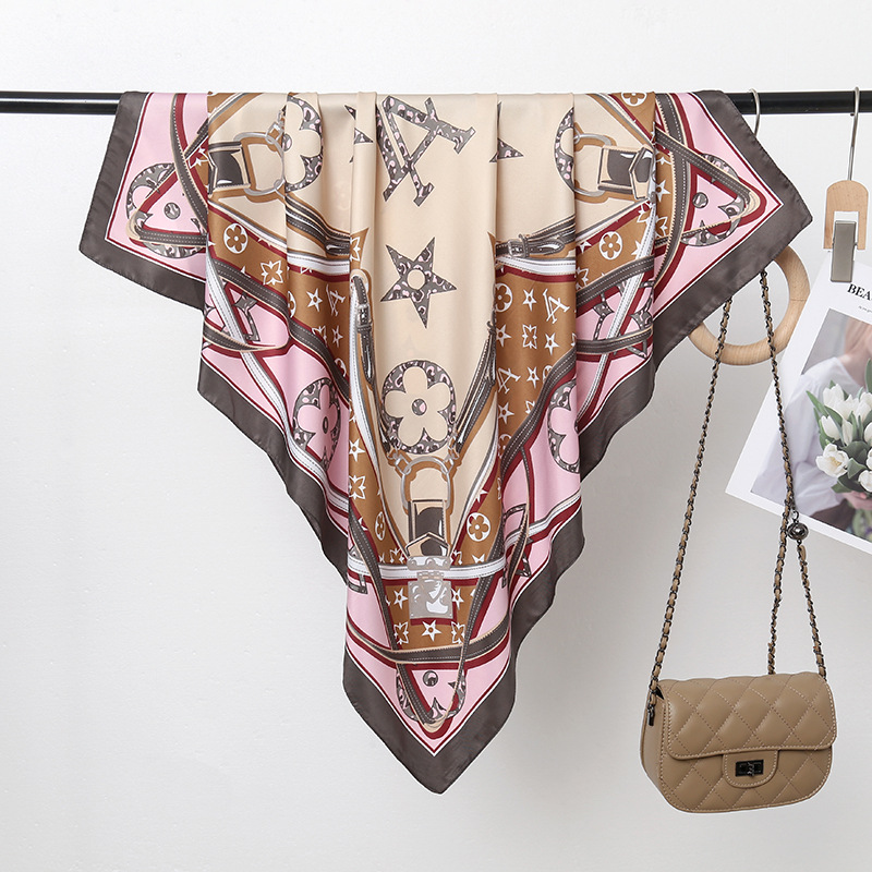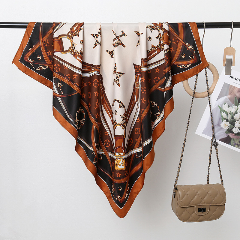 유럽과 미국 패션 올드 플라워 스타 체인 프린트 스카프 90cm 대형 사각 에어컨 룸 장식 숄 우아한 여성