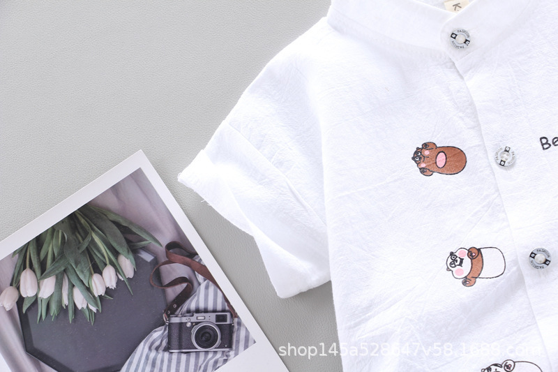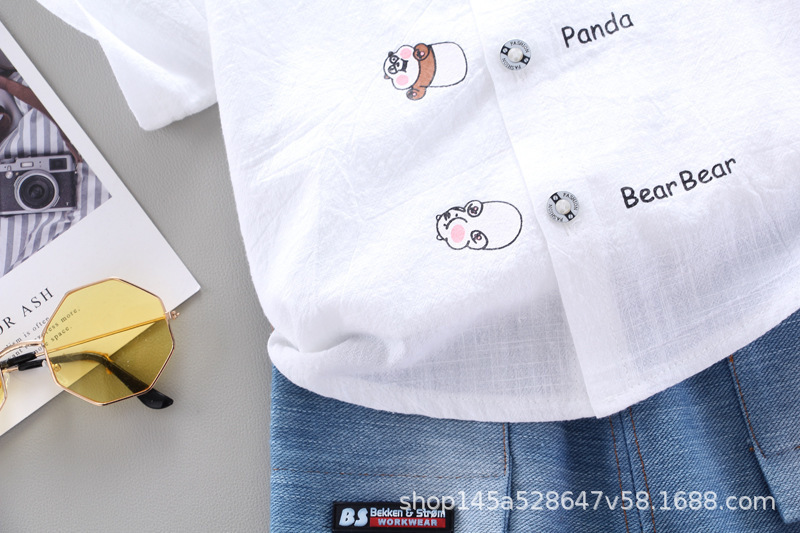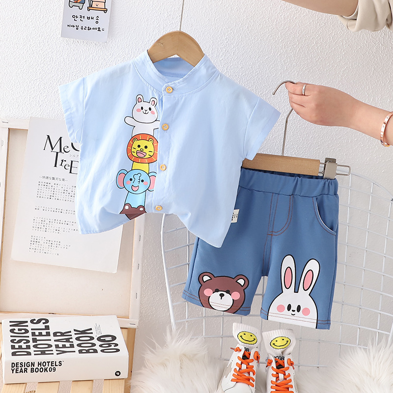 남자 아기 반팔 어린이 의류 여름 새로운 어린이 옷 잘 생긴 옷 아기 셔츠 귀여운 여름 투피스 세트스토어 가기