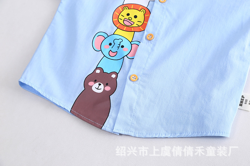 • QH 셔츠 네 동물 머리 짧은 하늘색