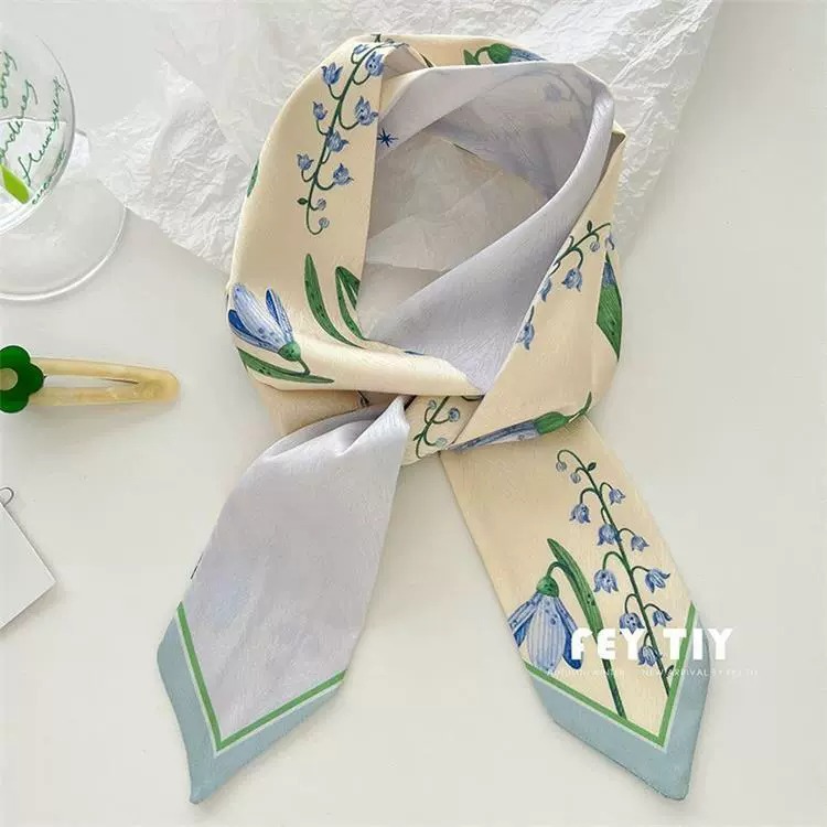 여름 인 스타일 작은 신선한 긴 스카프 모든 매치 타이 헤어 타이 가방 리본 헤어 밴드 장식 꽃 인쇄 스카프스토어 가기